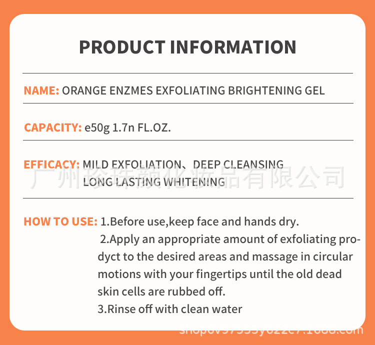Кросс-бордерный оранжевый энзимный эксфолиирующий отбеливающий гель для лица глубокого очищения и увлажнения в наличии