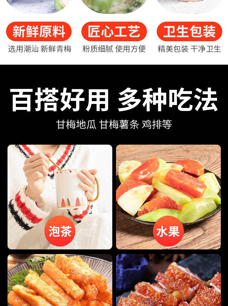 ![]() | 280g sour plum powder + 200g sweet plum powder (bottle sprinkled) | ¥19.9 / ≈ 240 ₽ | 4996 | 6031055753927 | |