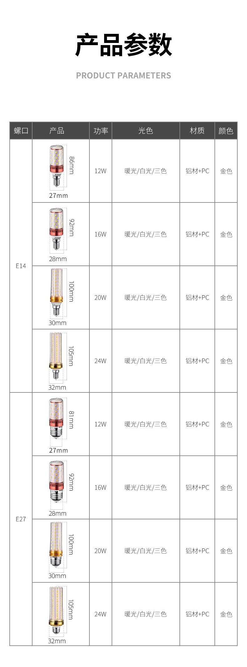 ![]() | Three color dimming | E14 small screw 12w (plastic type) | ¥1.39 / ≈ 17 ₽ | 999667 | 5844333127366 | |