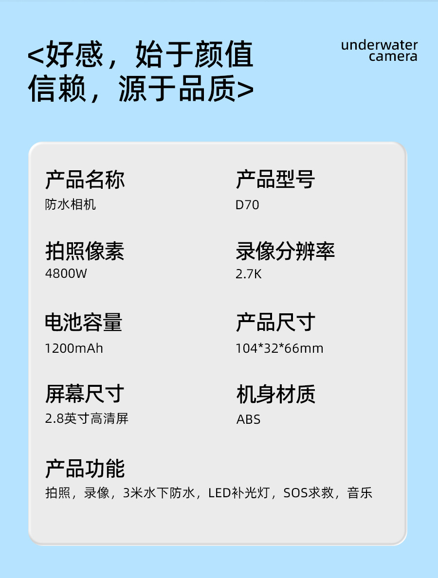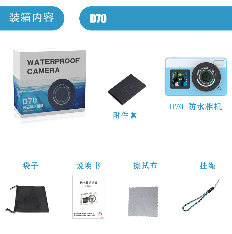 Список упаковки Waterproof camera 1, charging cable 1, lanyard 1, manual 1