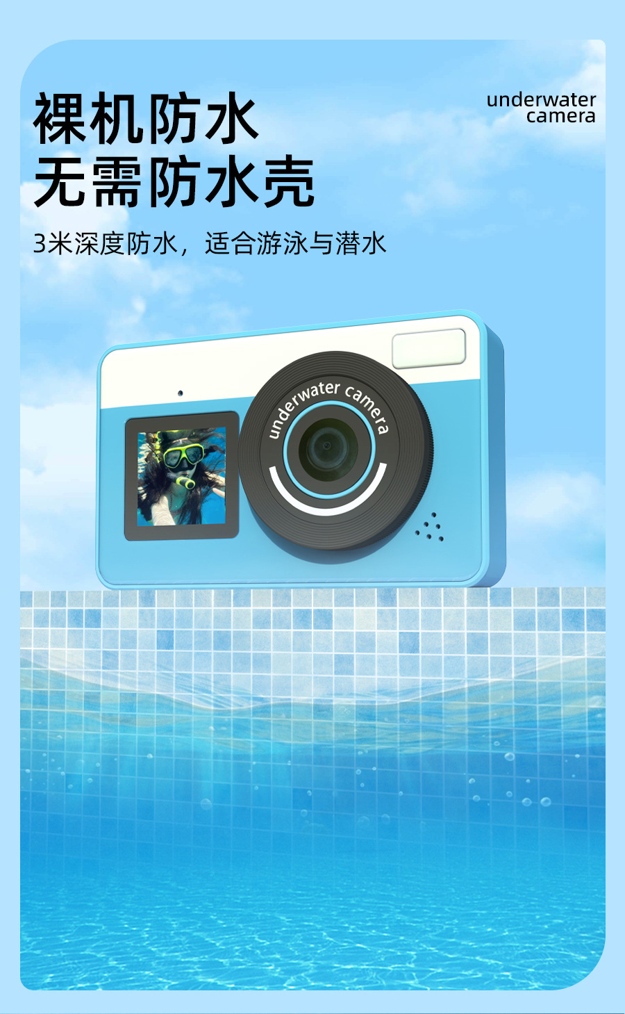 Водонепроницаемая камера 3м дурацкая единица 2.8 дюйма HD экран может делать селфи двойное изображение outdoor водонепроницаемая