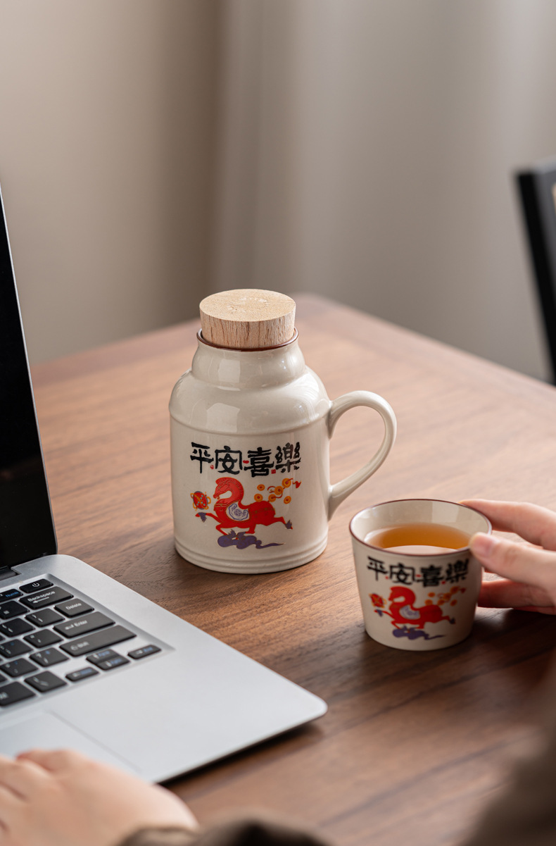 Небольшой теплый чайник Xiaohongshu, керамическая кружка с крышкой, большая емкость, офисный чайник, подарочная коробка