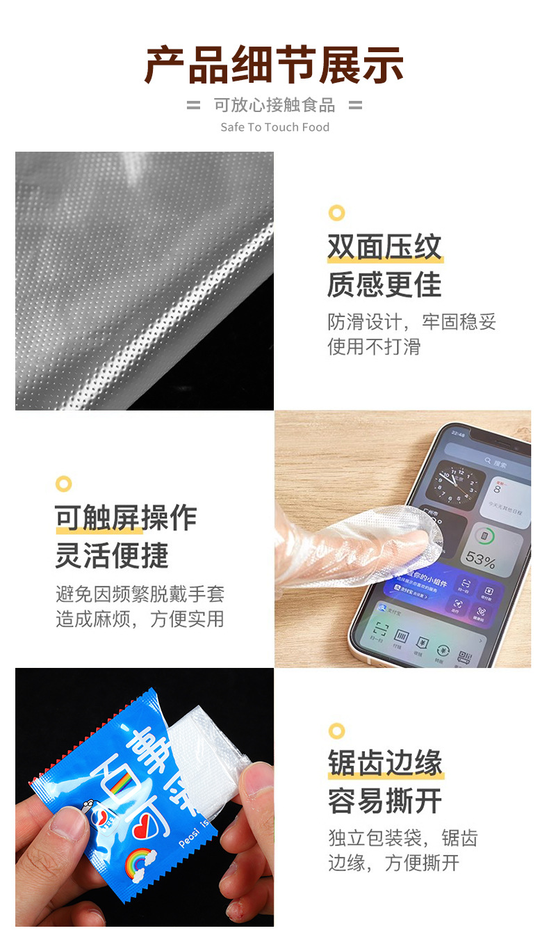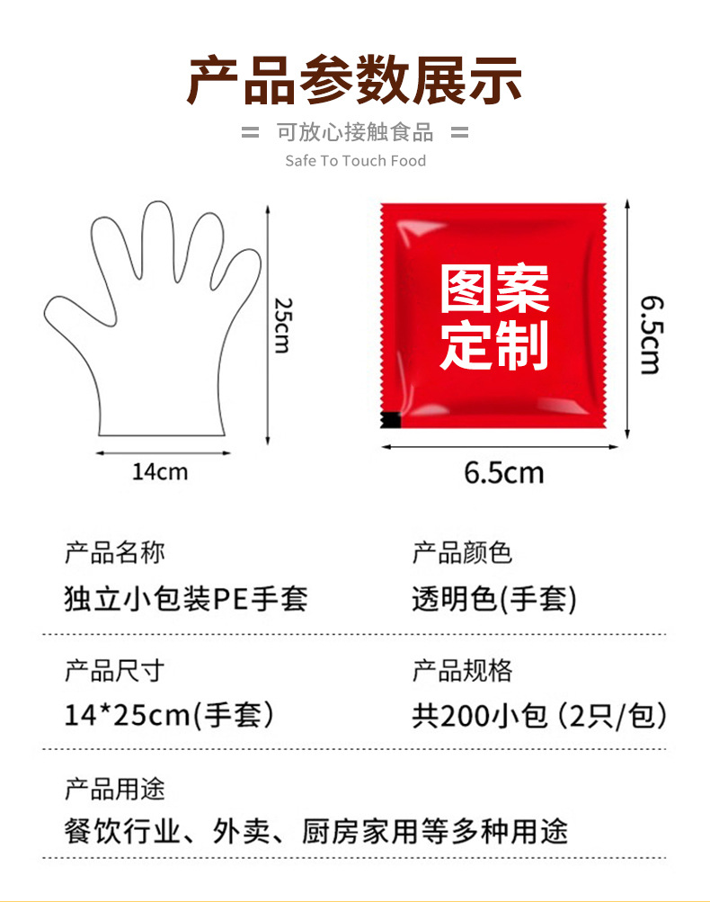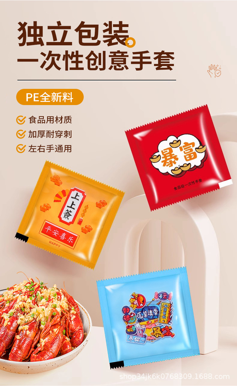 Одноразовые перчатки в индивидуальной упаковке для еды, специальные для выноса, жареной курицы, барбекю, раков, catering, утолщенные пластиковые перчатки