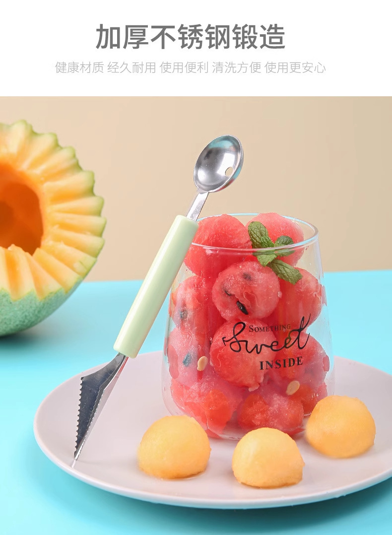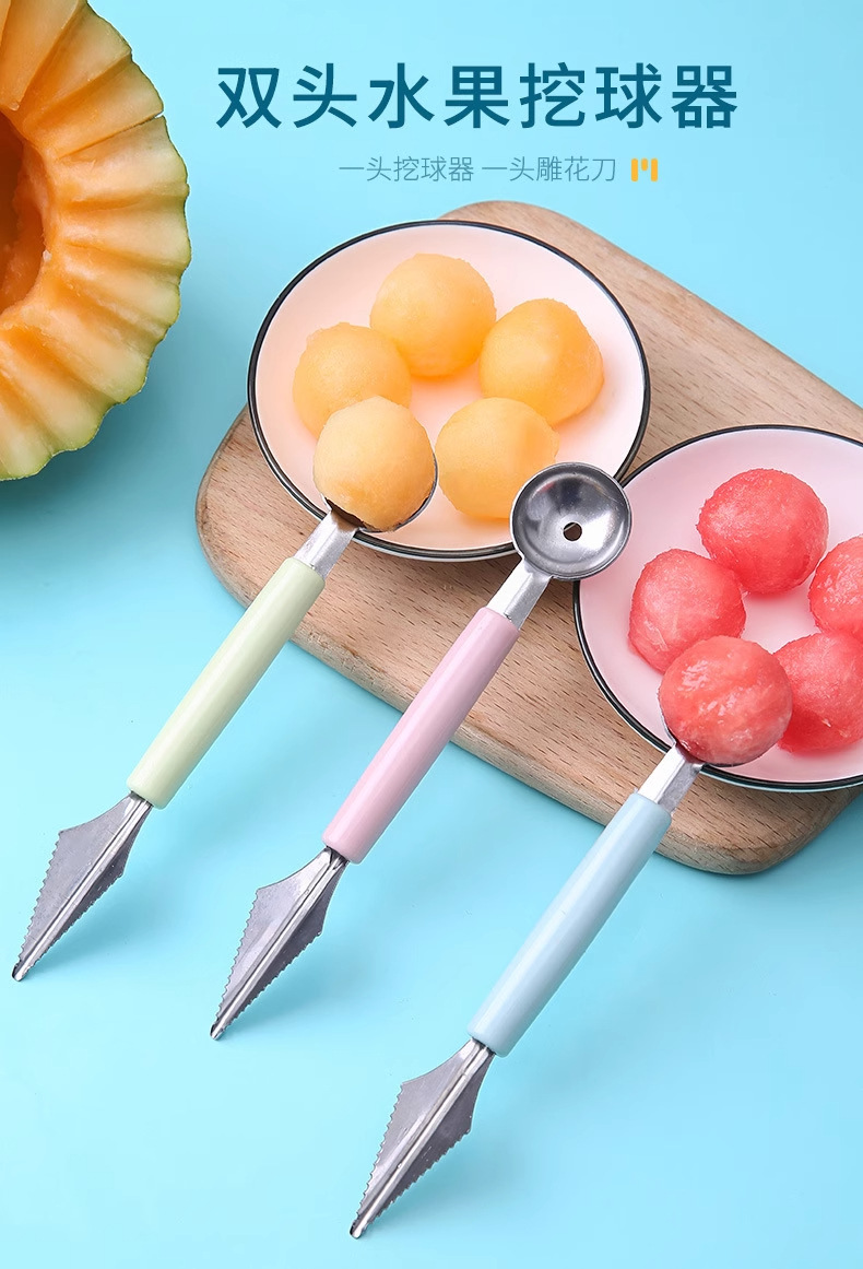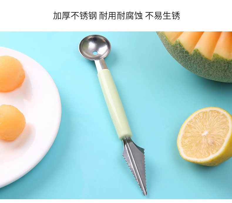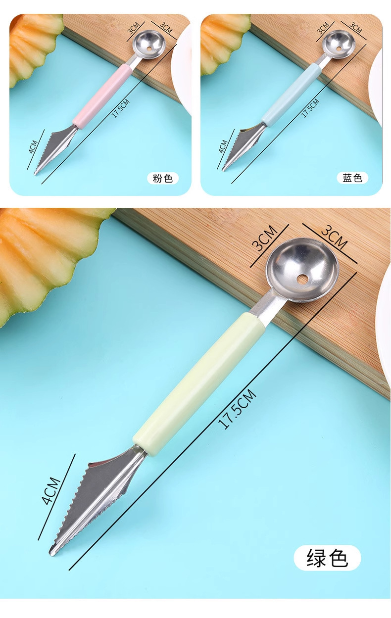 Кухонная ложка для выемки арбуза с двумя головками, домашняя, нержавеющая сталь, для фруктов, разделка мороженого, круглая ложка