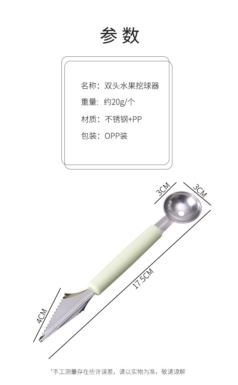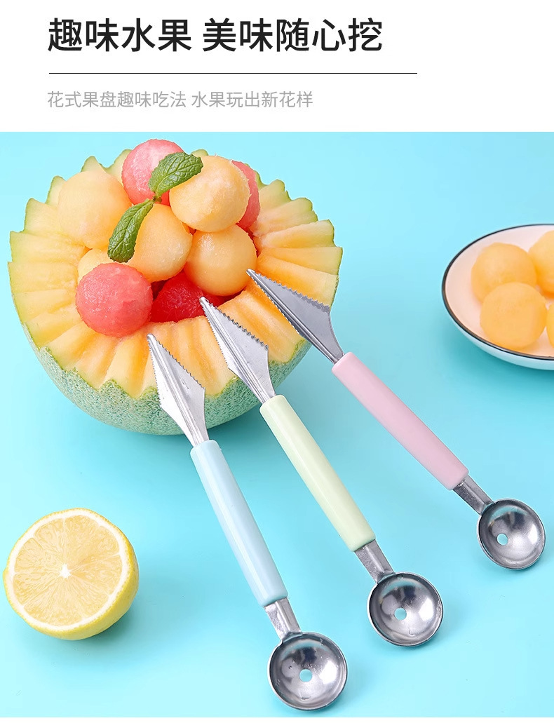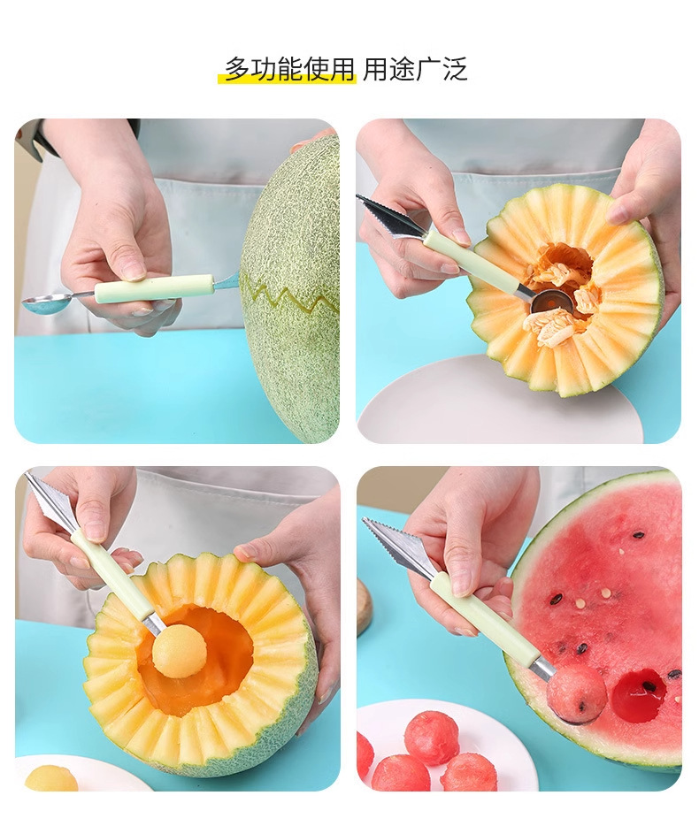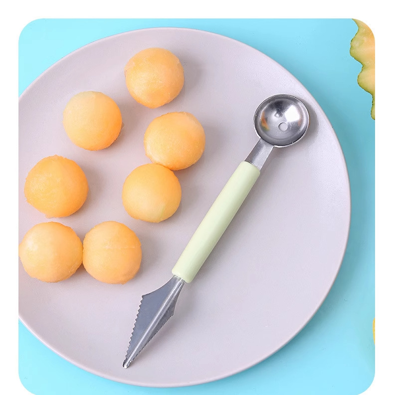 Кухонная ложка для выемки арбуза с двумя головками, домашняя, нержавеющая сталь, для фруктов, разделка мороженого, круглая ложка