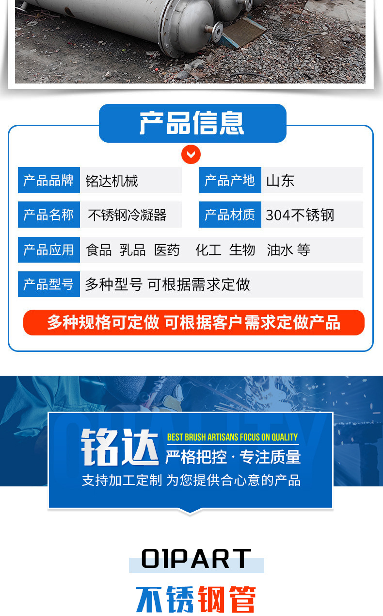 Конденсатор из нержавеющей стали, девяносто процентов новый, многофункциональное химическое оборудование, теплообменник, горизонтальный конденсатор из нержавеющей стали