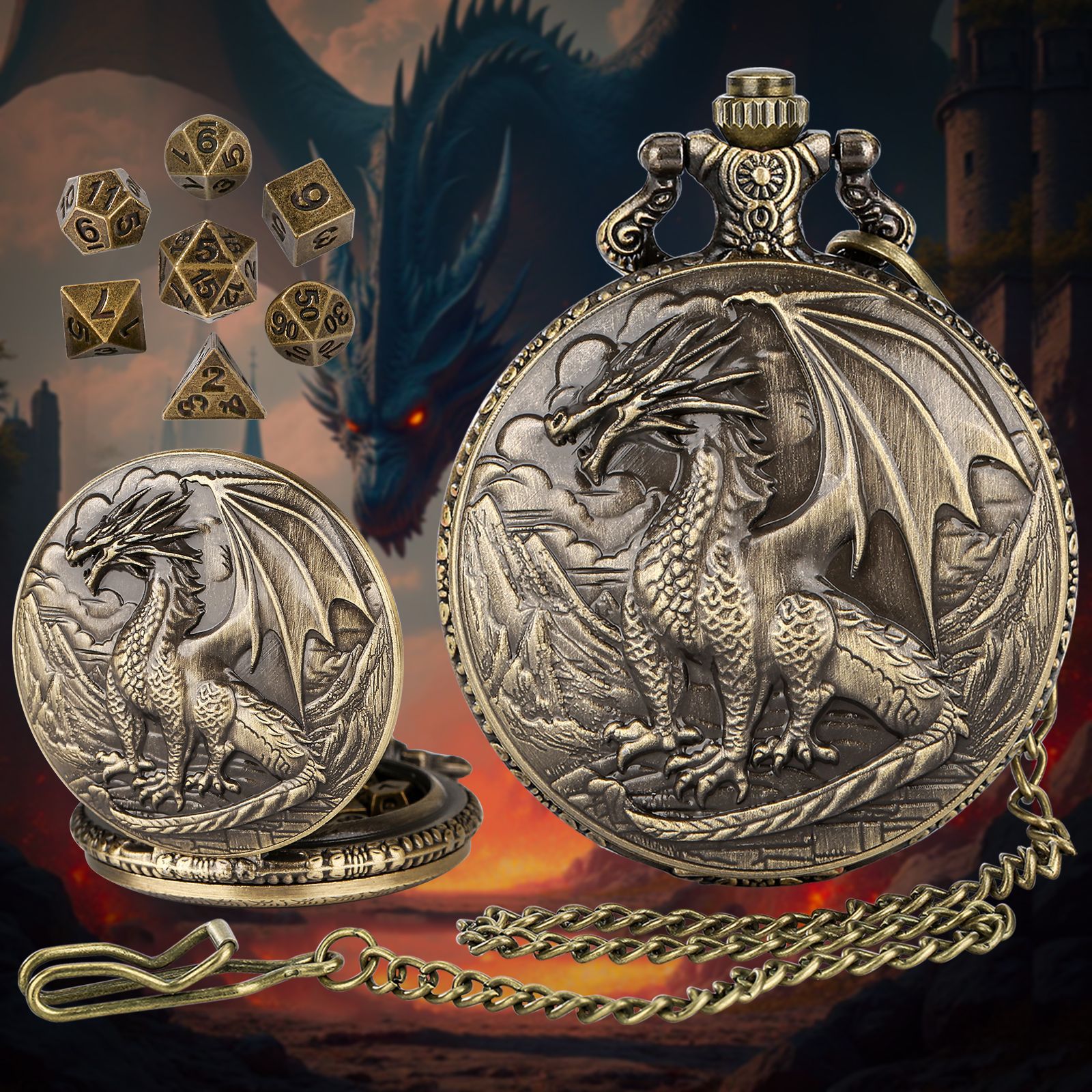 (Частная модель) Ювелирный карманный чехол для кубиков DND с ретро трехмерным рельефом стоящего западного дракона с подвижным хвостом