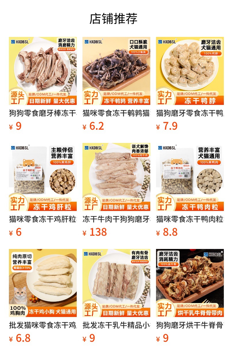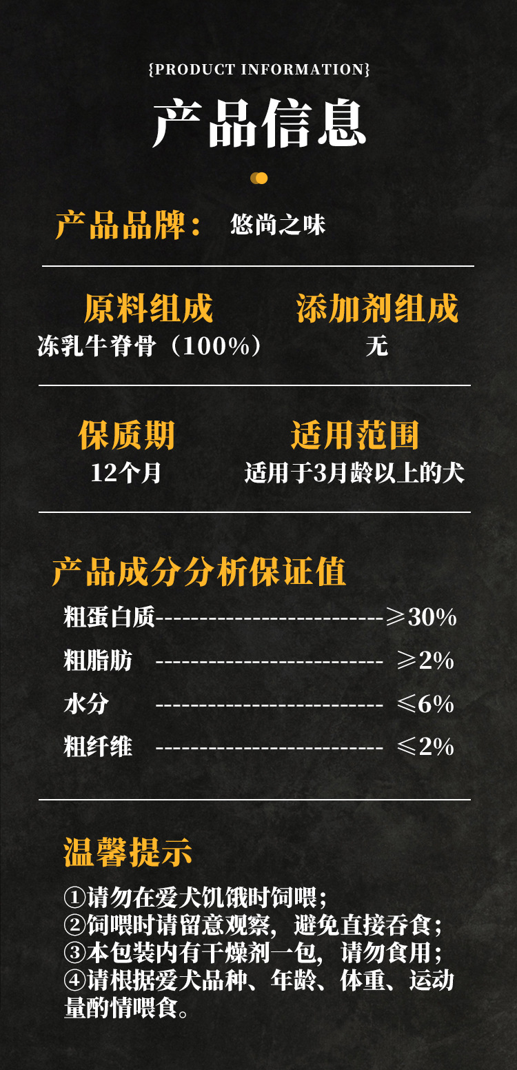 ![]() | Bag 50g/bag | Freeze-dried dairy cow spine | ¥6.8 / ≈ 82 ₽ | 5042 | 5864066623882 | |