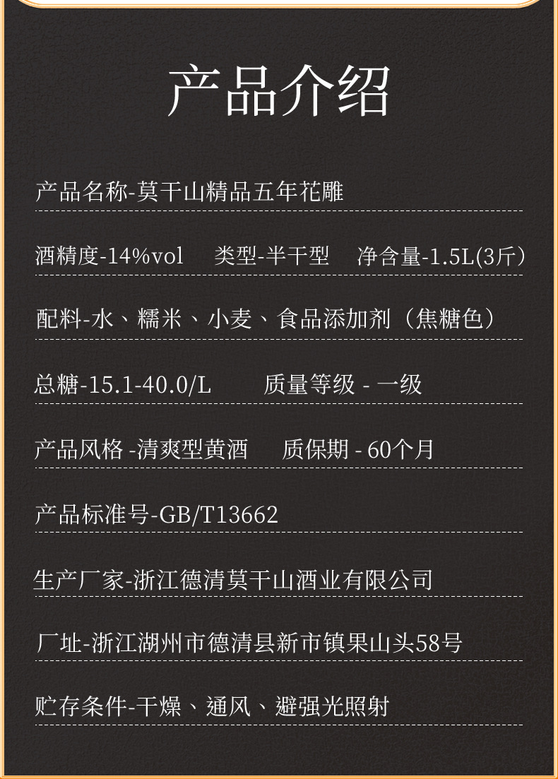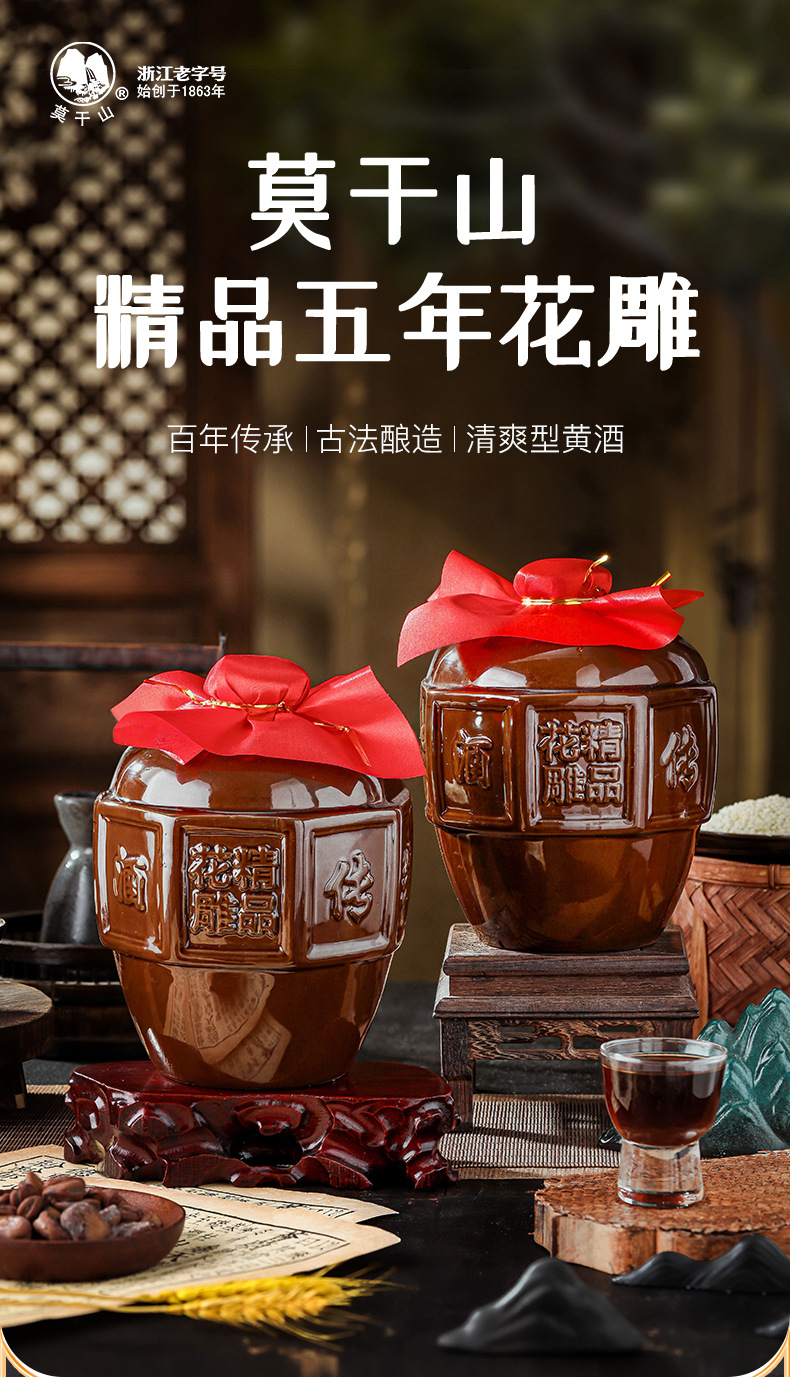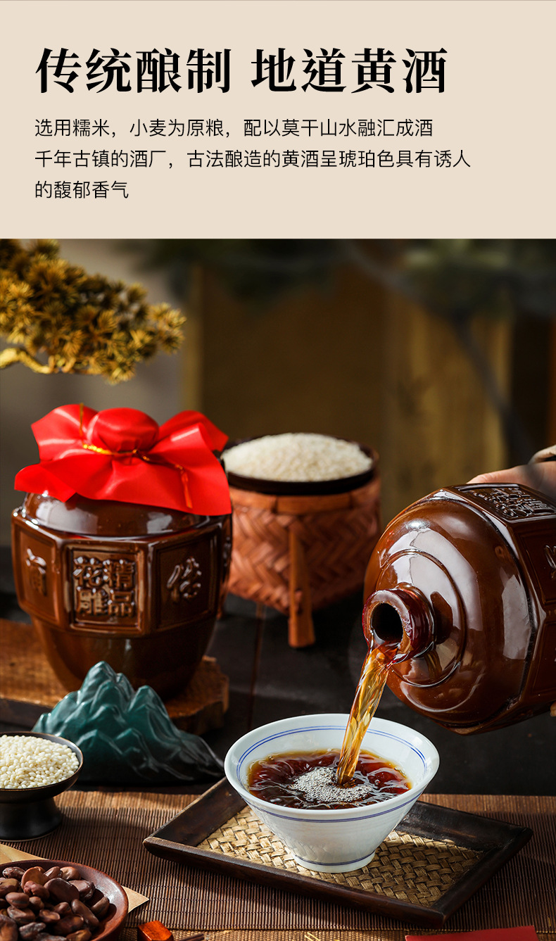 Моганьшань желтое рисовое вино пятилетнее хуадяо аутентичное полусухое 1.5L алтарная упаковка ручной работы
