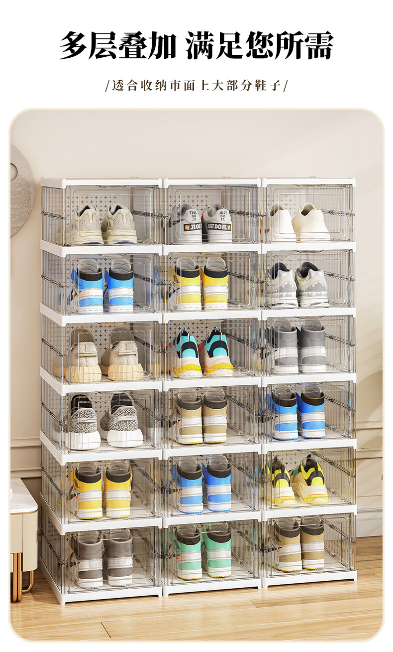 Складная коробка для обуви, утолщенная, без установки, многоуровневая, пылезащитная, прозрачная, телескопическая, выдвижная полка для хранения, кросс-бордерный temu