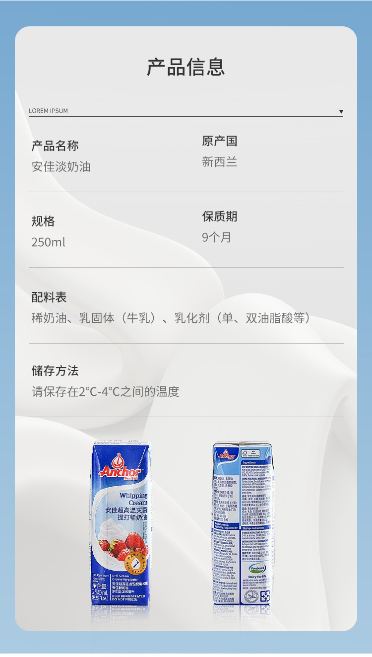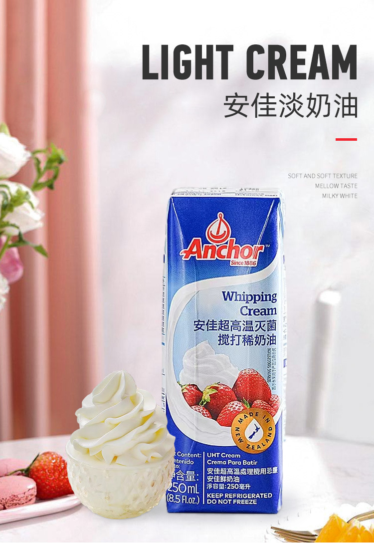Животный легкий крем 250мл Маленькая упаковка Домашний декор Крем Молочная шапка Выпечка Ингредиенты Свежий крем Мусс