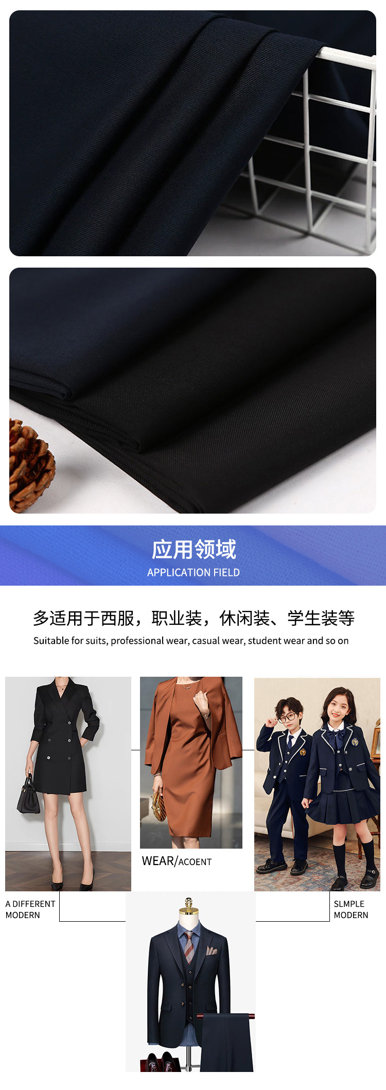 Ткань TR двусторонний тонкий твил 360г, высококачественная ткань для костюма, юбка для школьной формы