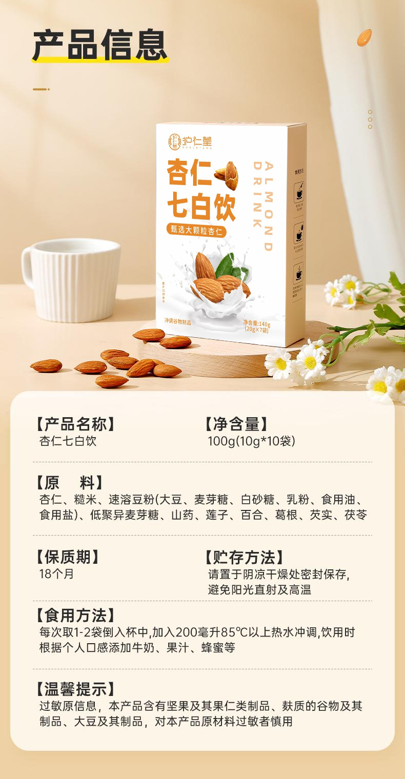 Напиток Almond Seven White использует белый питательный порошок замены пищи, ямс, лилия, семена лотоса, таку, питательный завтрак, диетическое волокно