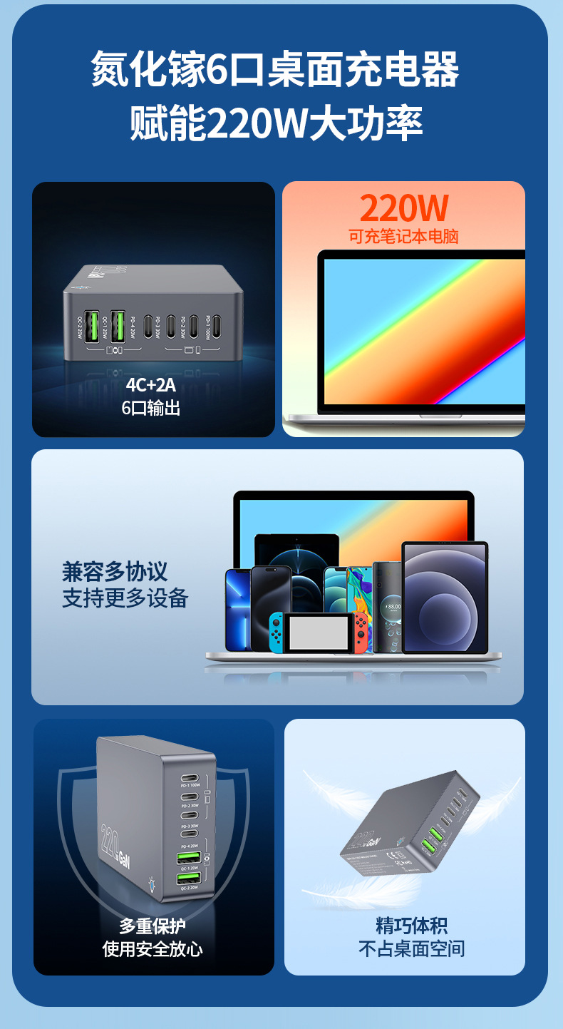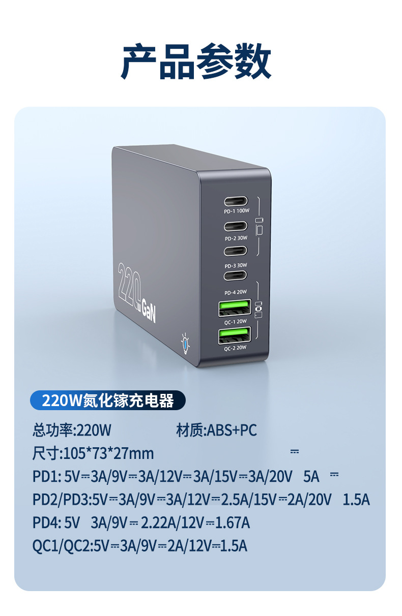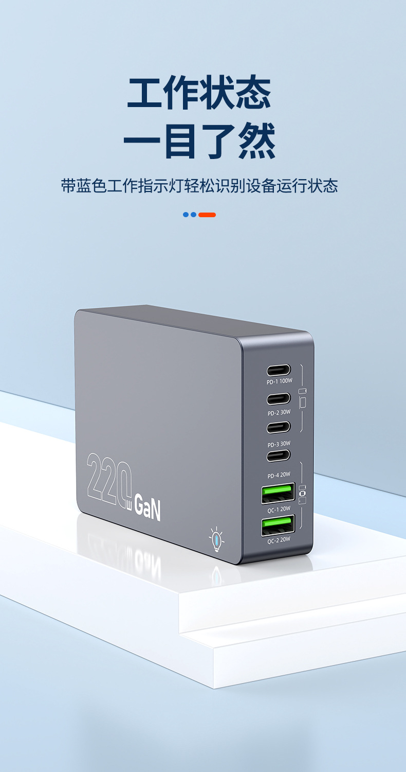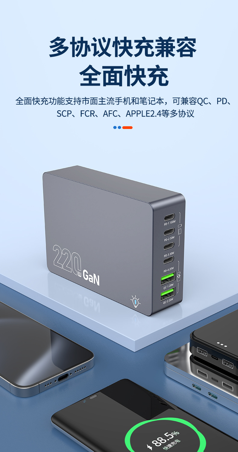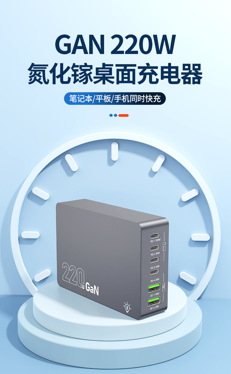 Кросс-граница новый 220W зарядное устройство на основе нитрида галлия многопортовое настольное умное зарядное устройство для ноутбуков и фаблетов с быстрой зарядкой