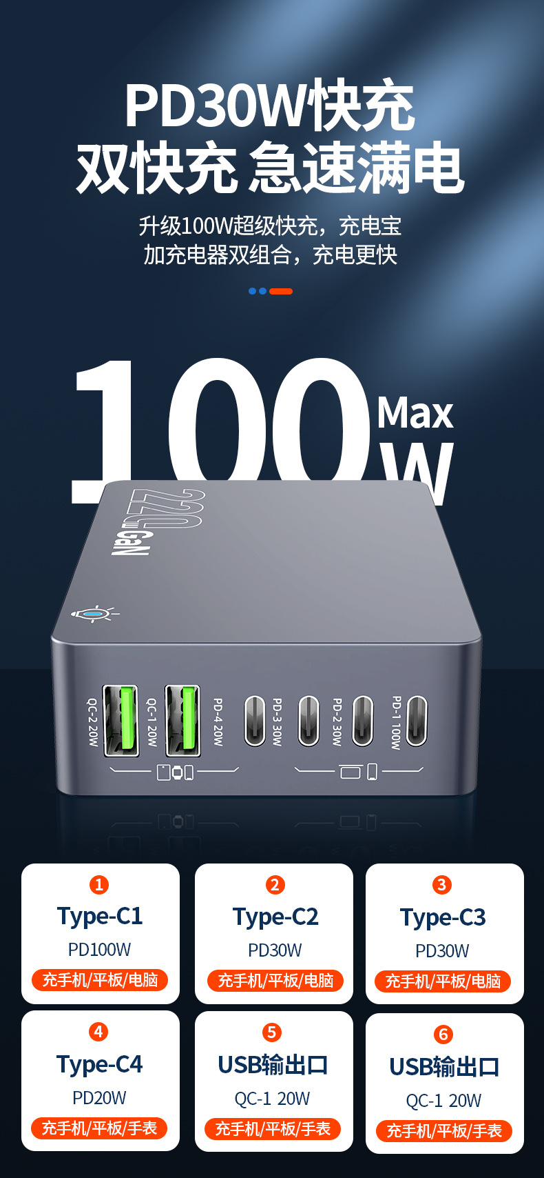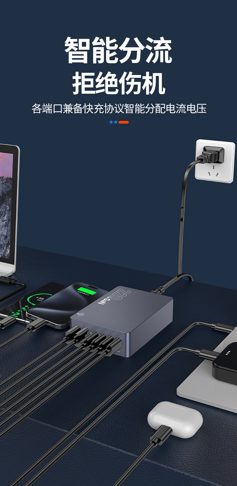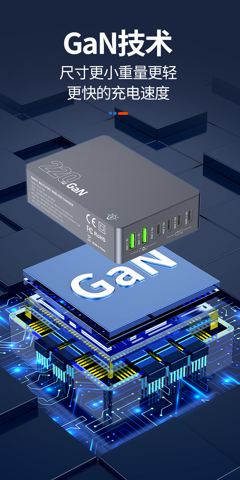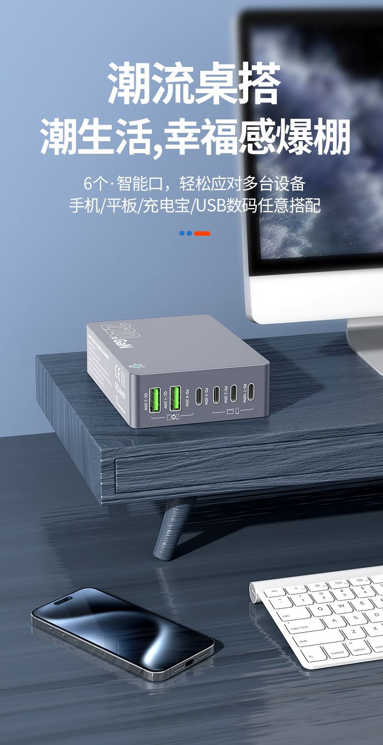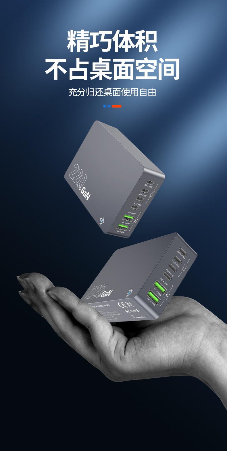 Кросс-граница новый 220W зарядное устройство на основе нитрида галлия многопортовое настольное умное зарядное устройство для ноутбуков и фаблетов с быстрой зарядкой