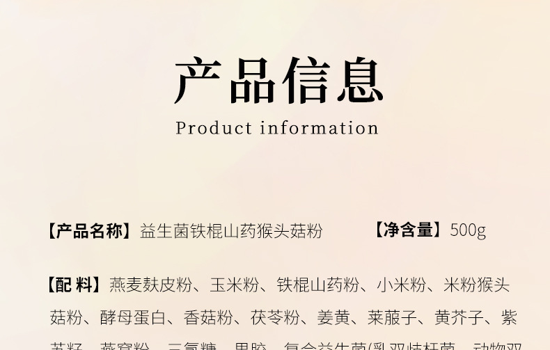Номер товара Probiotic iron bar yam hericium powder