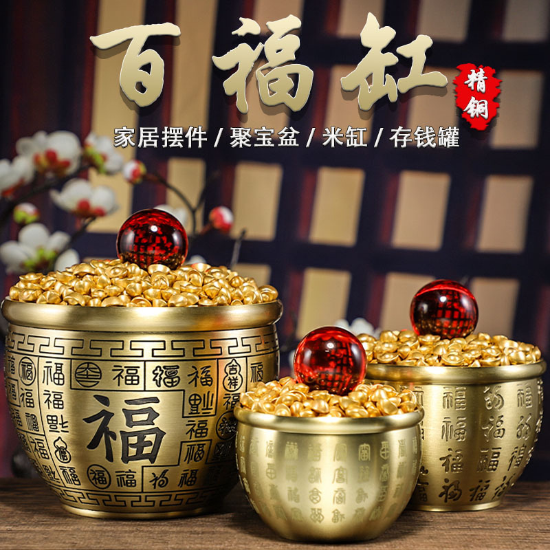 Оптовая продажа от производителя, сокровищница, чистая латунь, банка ста благословений, настольное украшение, банка богатства, мелкая бронзовая посуда, бронзовая резьба