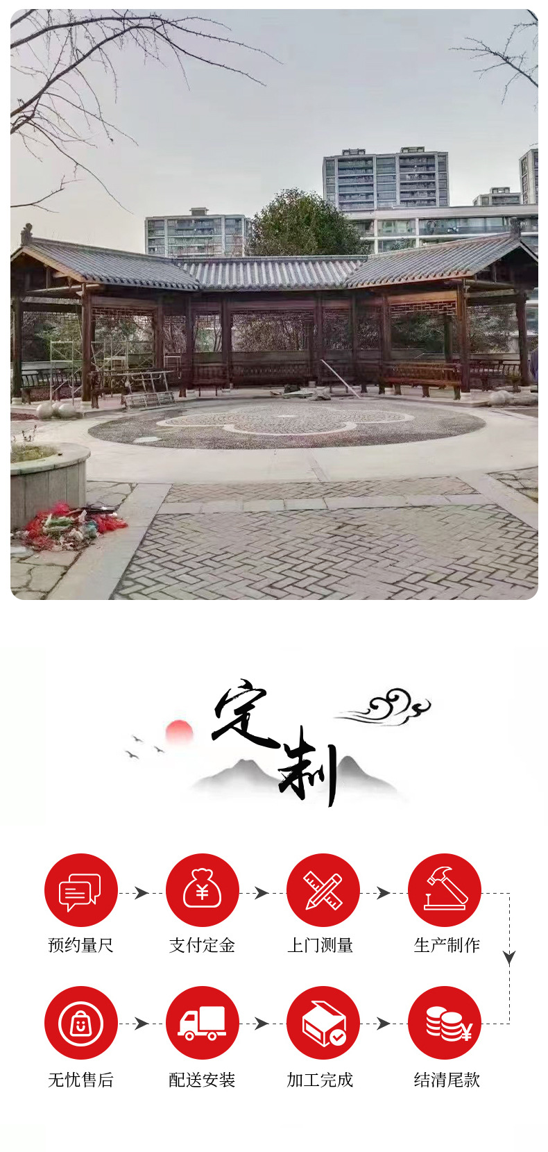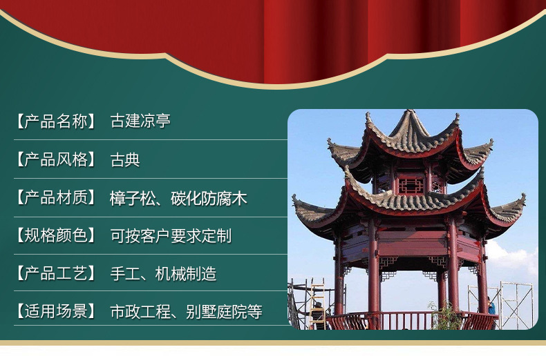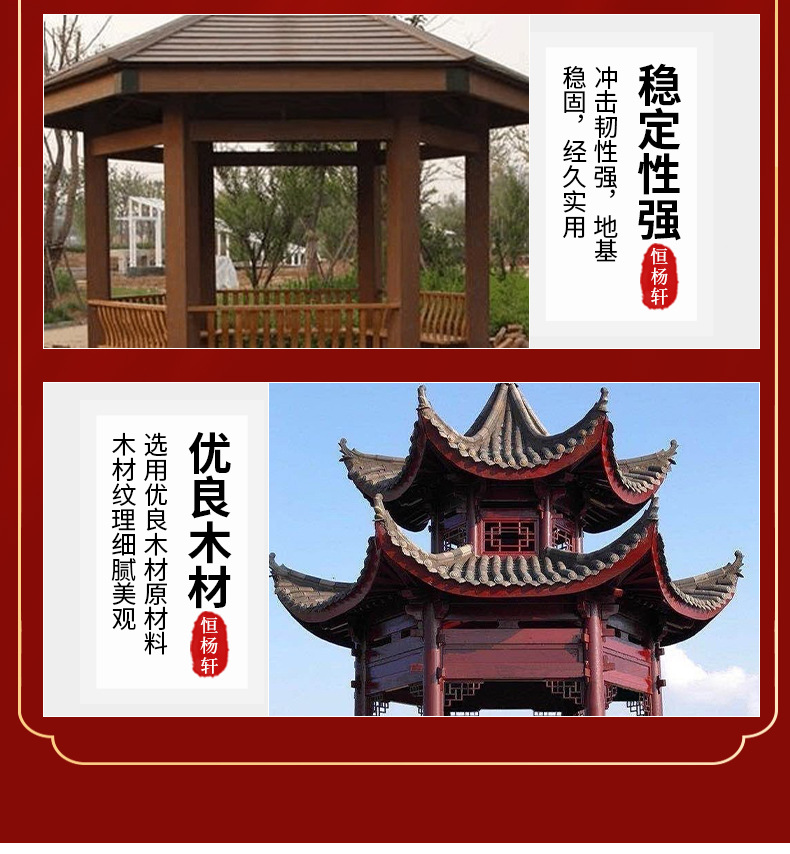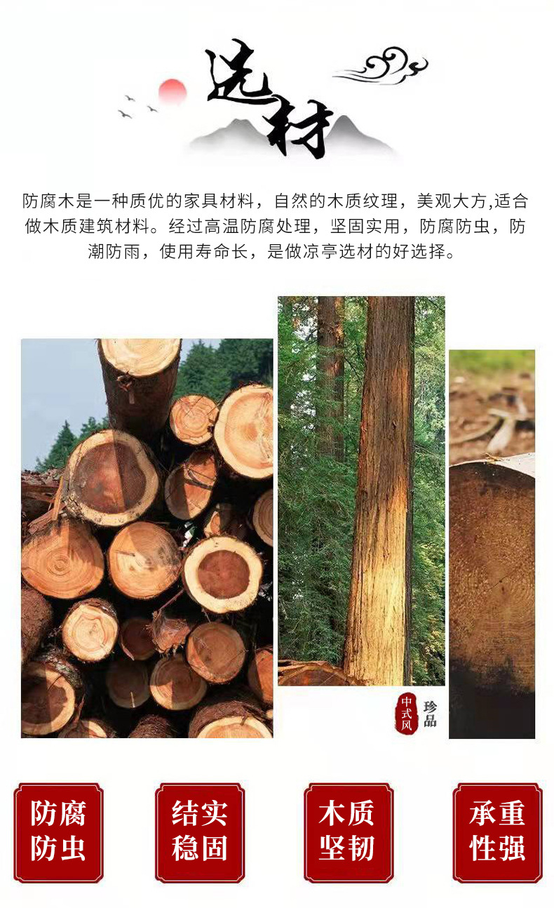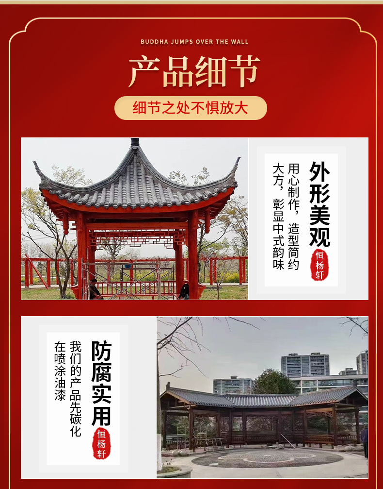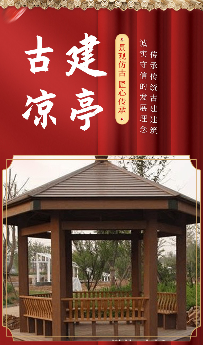 Уличная беседка, четырехугольный павильон из массива дерева для двора, антикварный стиль длинного коридора для внутренней виллы, уличный восьмиугольный павильон из антикоррозийного дерева