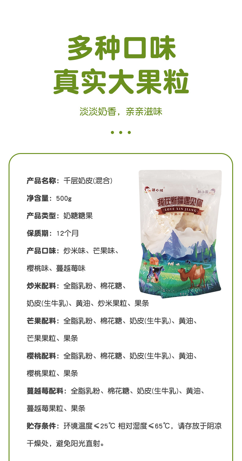 ![[Xinjiang specialty] Xinjiang heart region lasagna milk skin 500g mixed flavor fried rice net red snack fruit milk cover](/api/image?url=https%3A%2F%2Fcbu01.alicdn.com%2Fimg%2Fibank%2FO1CN01tyWeax1mUMJdOFlyG_!!2217188144957-0-cib.jpg)