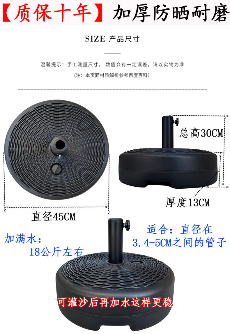 Зонт с центральной колонной 17л пластиковая основа для заливки водой круглый зонт для защиты от солнца в саду ветроустойчивый и противоударный