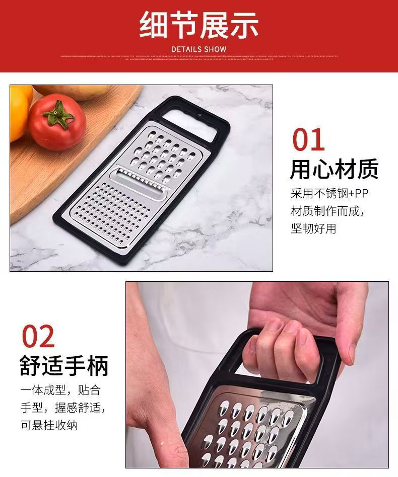 Оптовая продажа нержавеющей стали терки трехв одном плоская многофункциональная терка для редьки и фруктов