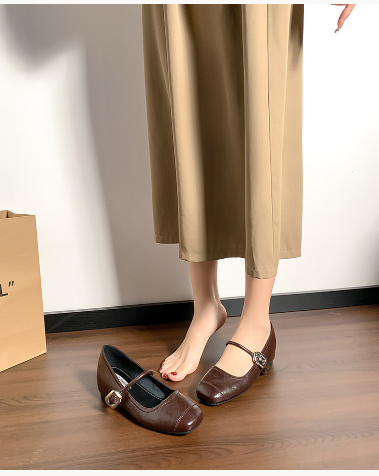 Обувь для работы из натуральной кожи с увеличением роста, модель Мэри Джейн, квадратный носок, мелкая обувь с одной пряжкой, большие размеры женской обуви 41-43