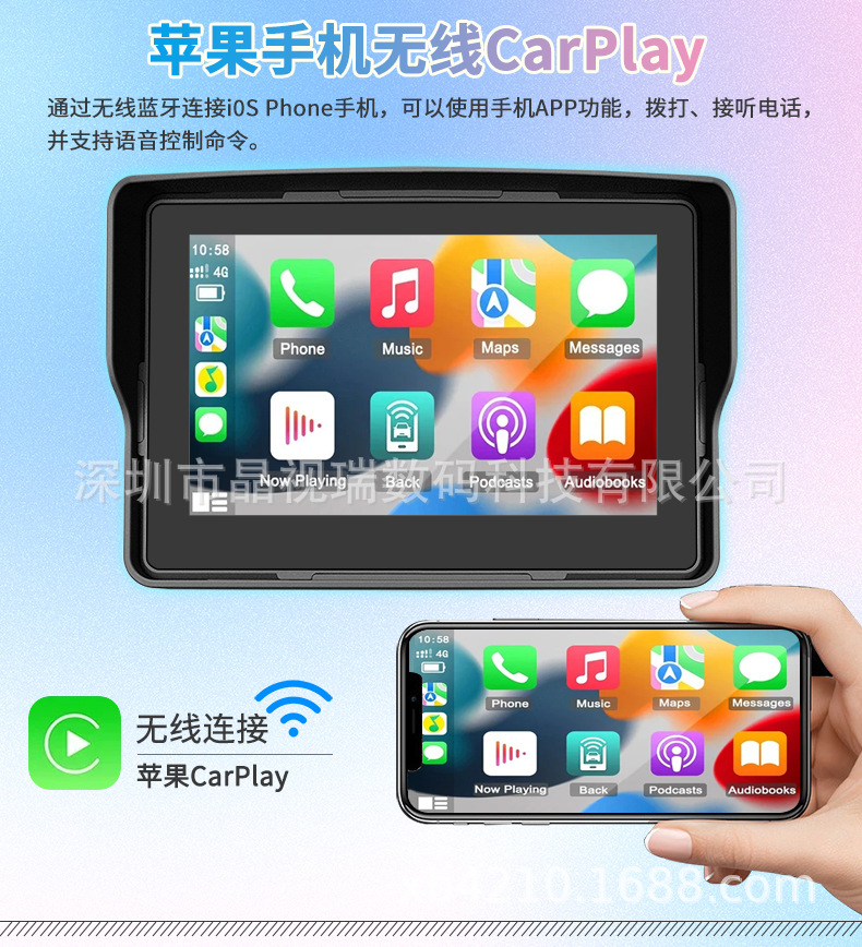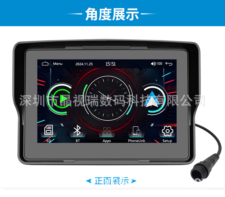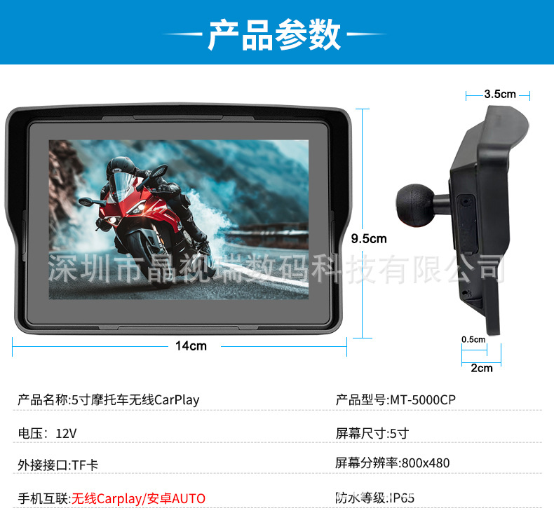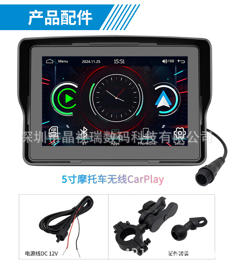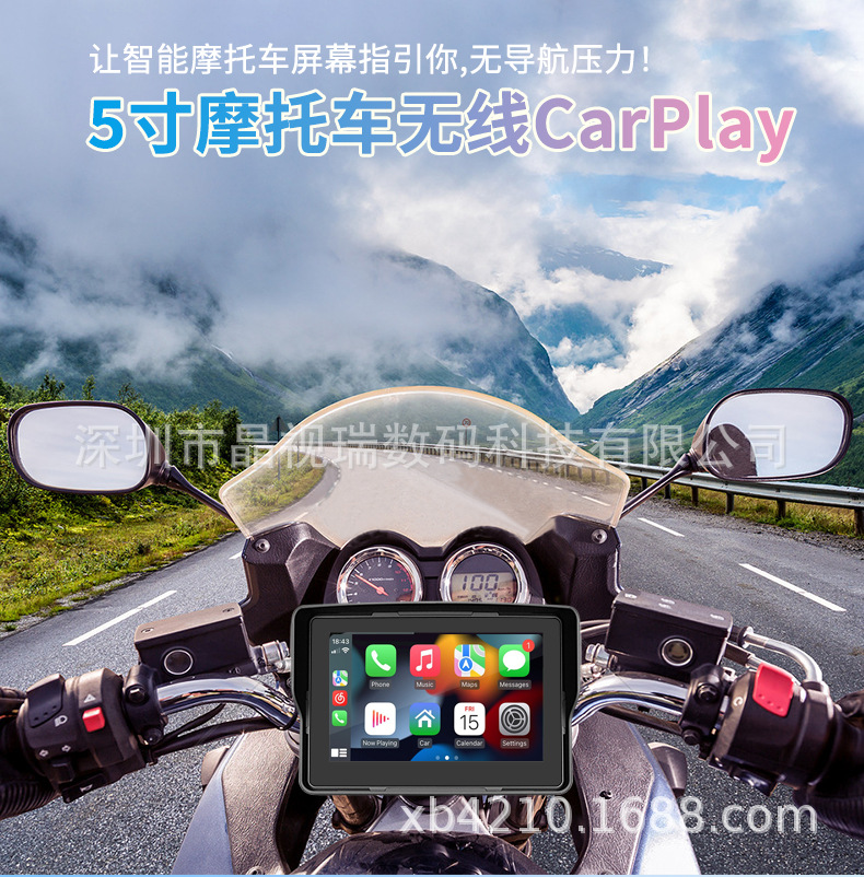 5 дюймовый видеорегистратор для мотоцикла, беспроводной Carplay, навигация, водонепроницаемый, HD портативный все-в-одном