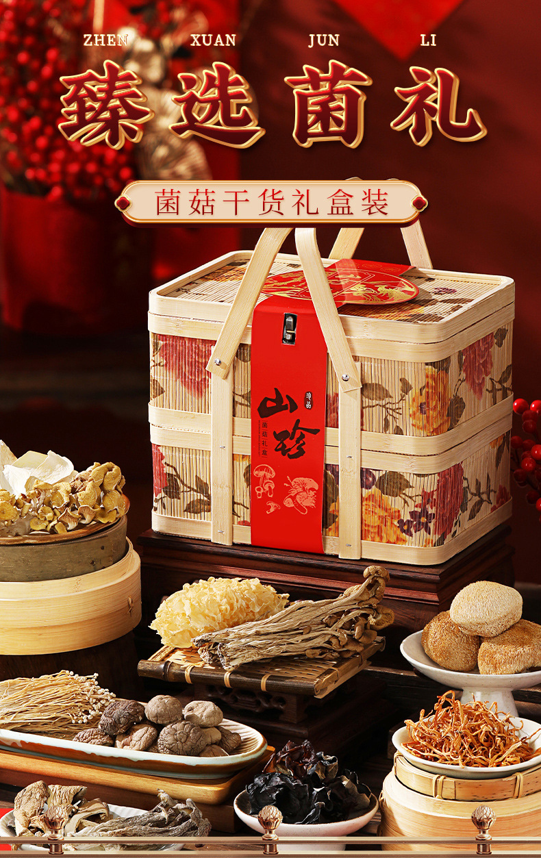 Подарочный набор грибов с редкими сушеными деликатесами, специальный подарочный пакет для Весеннего фестиваля, подходит для визитов к родственникам, в качестве подарка, для новогодних бонусов сотрудникам и для групповых покупок
