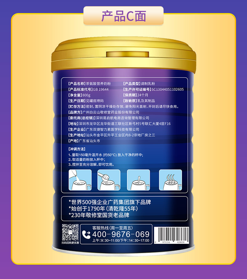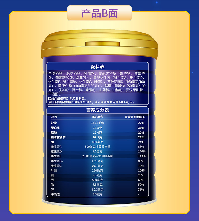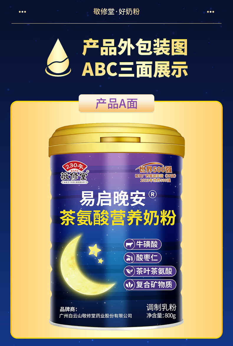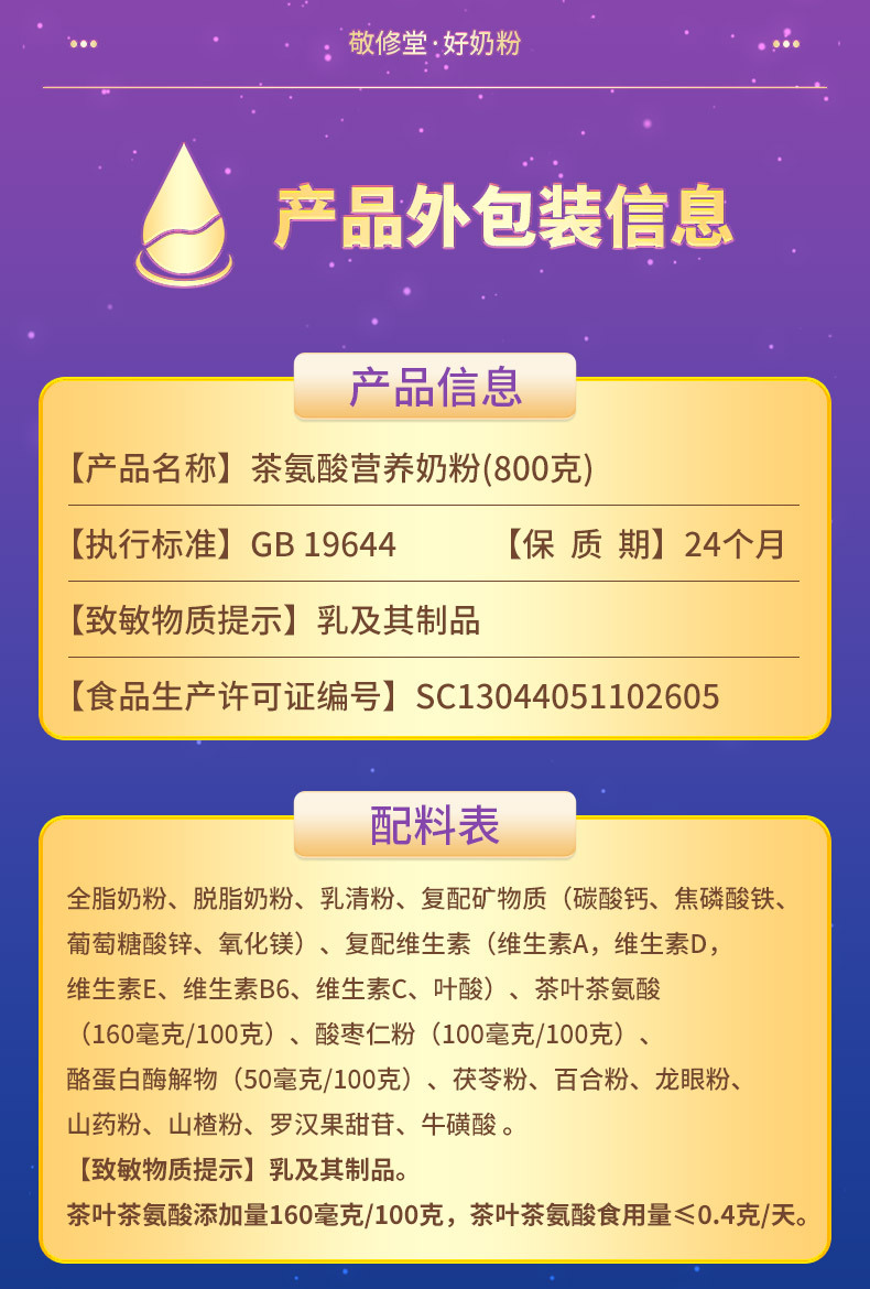 Порошок молока JingXiutang с теанином 800г, для сна, для детей и взрослых