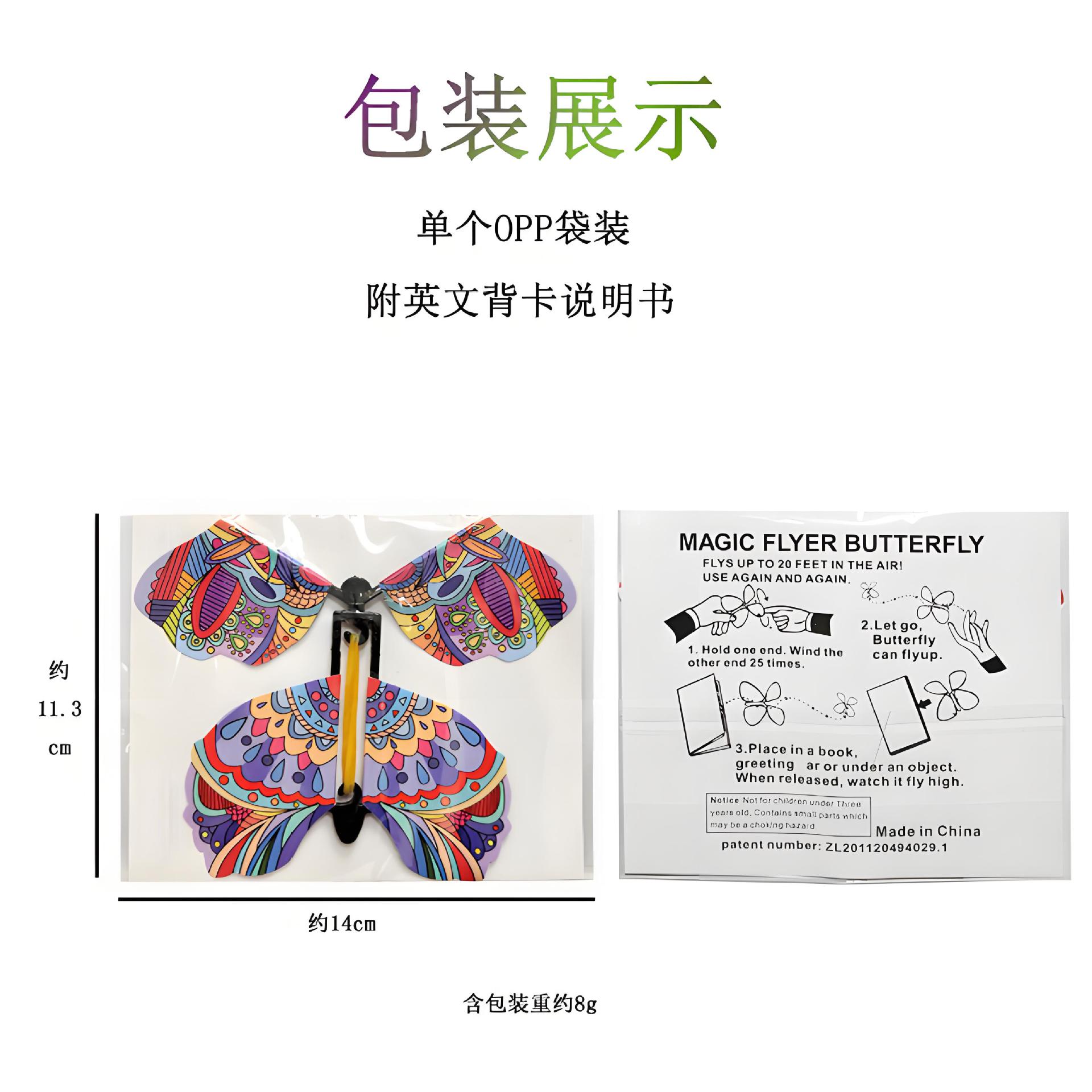 产品包装:1只蝴蝶+1张纸卡(印有英文说明书)+1个OPP袋