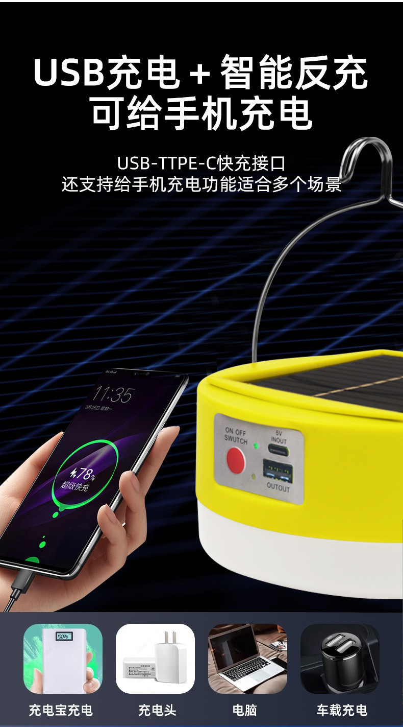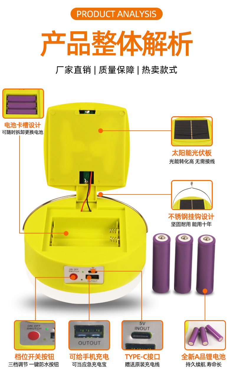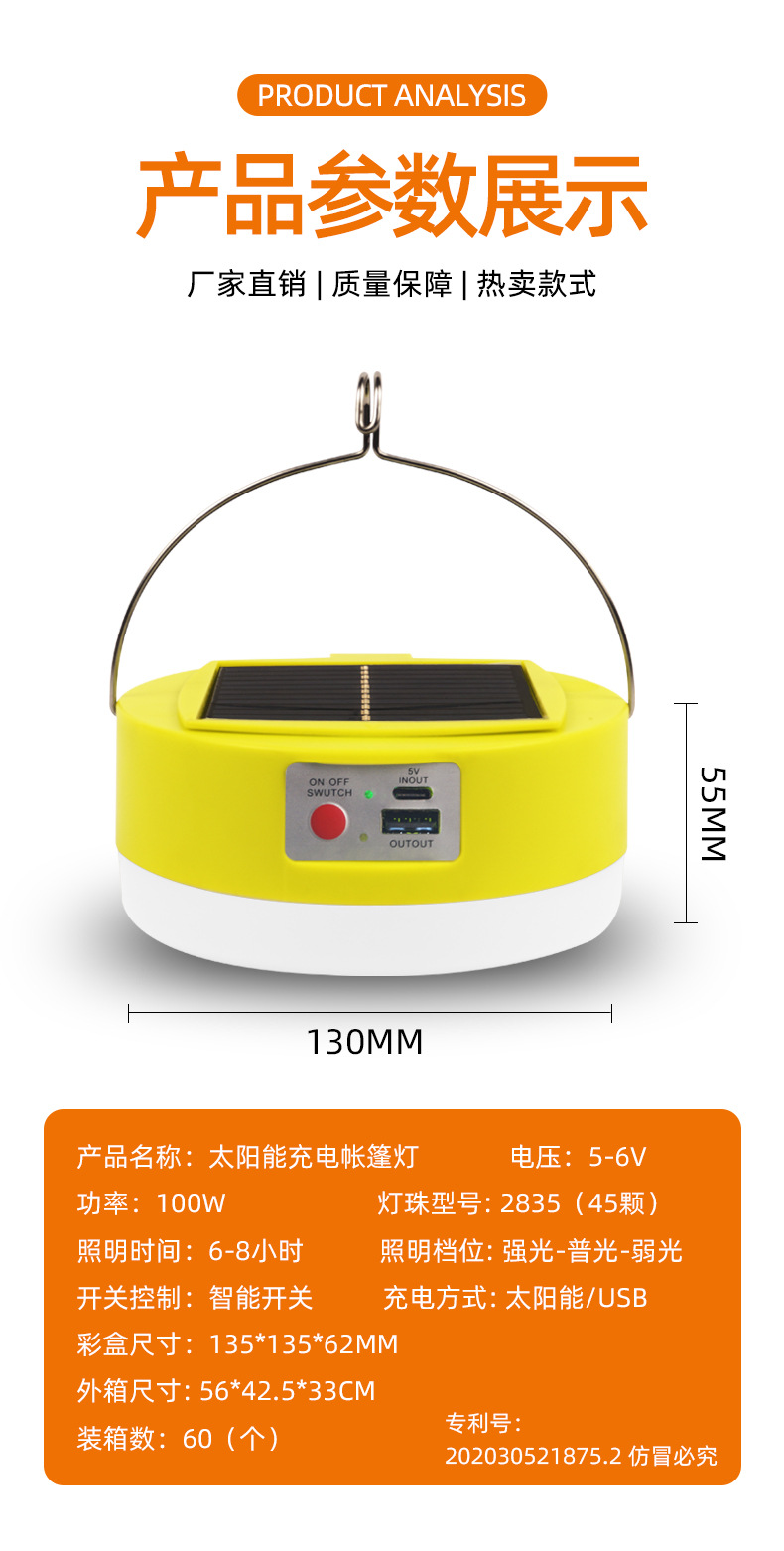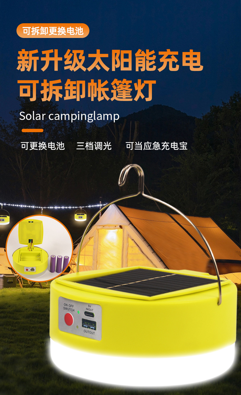 Светильник на солнечных батареях для кемпинга, съемный аккумулятор, аварийный свет, уличный свет для ночного рынка