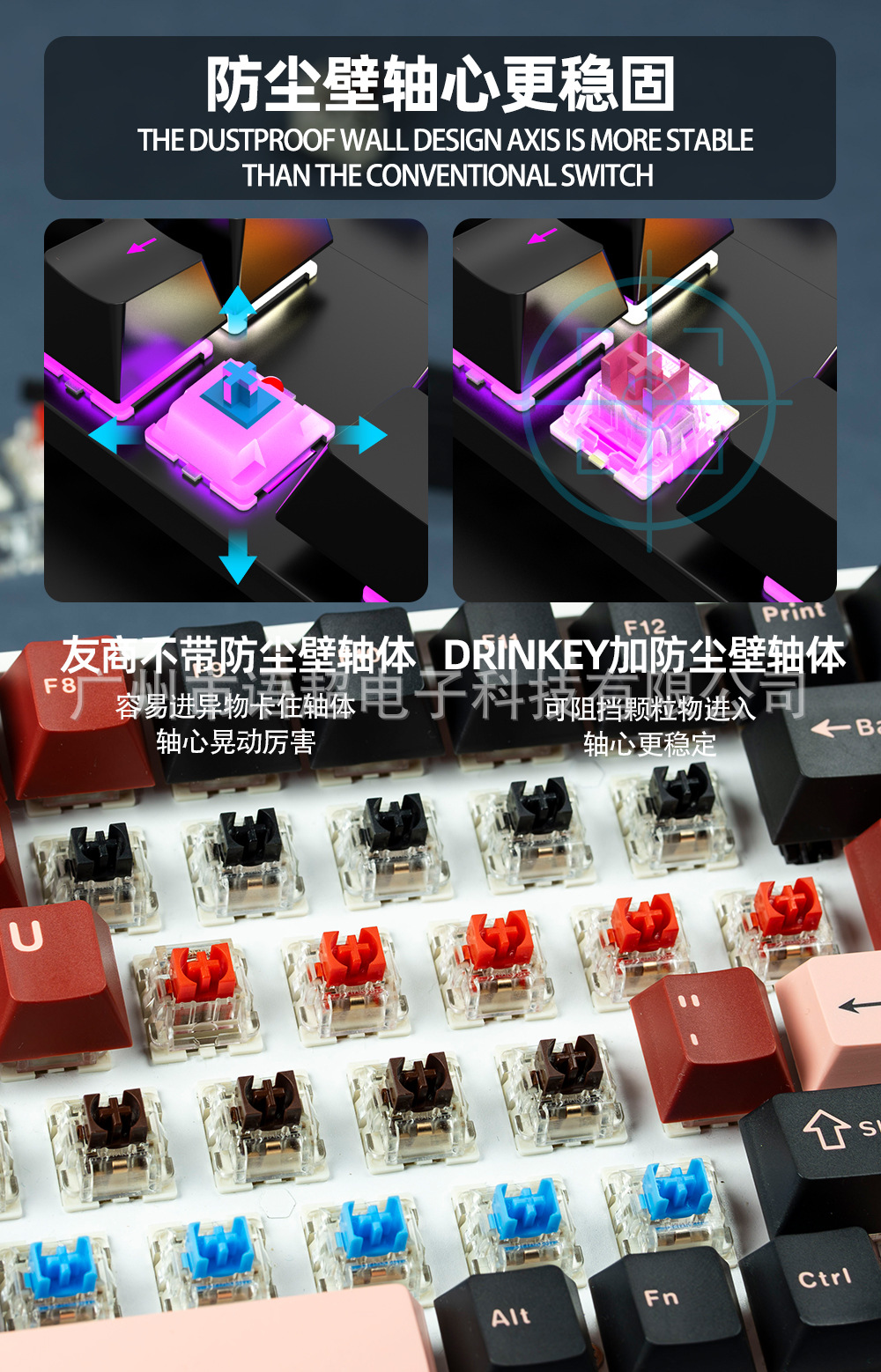 工厂专业承接各类三脚轴五脚轴定制LOGO颜色,欢迎键盘工厂,客制化团队,品牌商前来洽谈。
