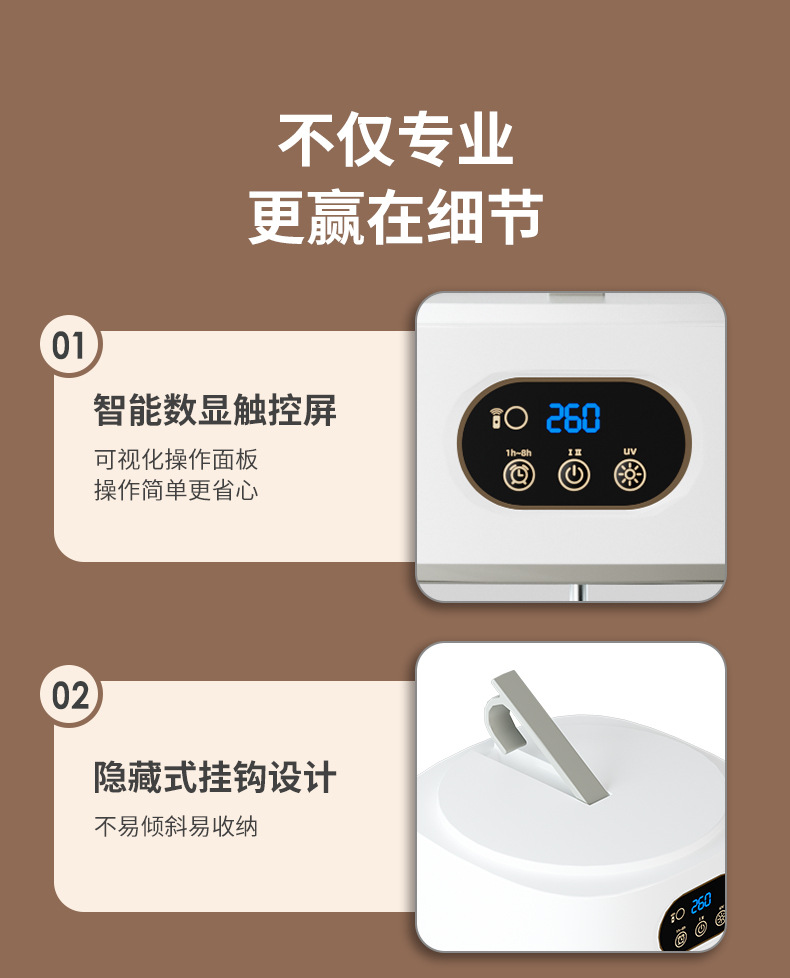 功能:1-8小时定时,两档风速,紫外线消毒灯,可遥控操作