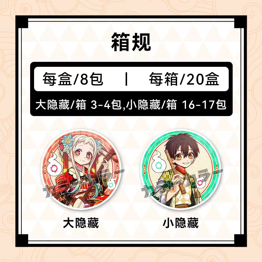 ![]() | (japanese fan-made) earthbound boy hanako-kun badge second edition (8 packs/box) | One unit contains 20 boxes, with each box containing 8 packs. there's a chance of pulling a rare, oversized secret chase figure (58mm) | 8шт: ¥8.00, 16шт: ¥7.50, 160шт: ¥7.30 | 3568 | 5960600988445 | |