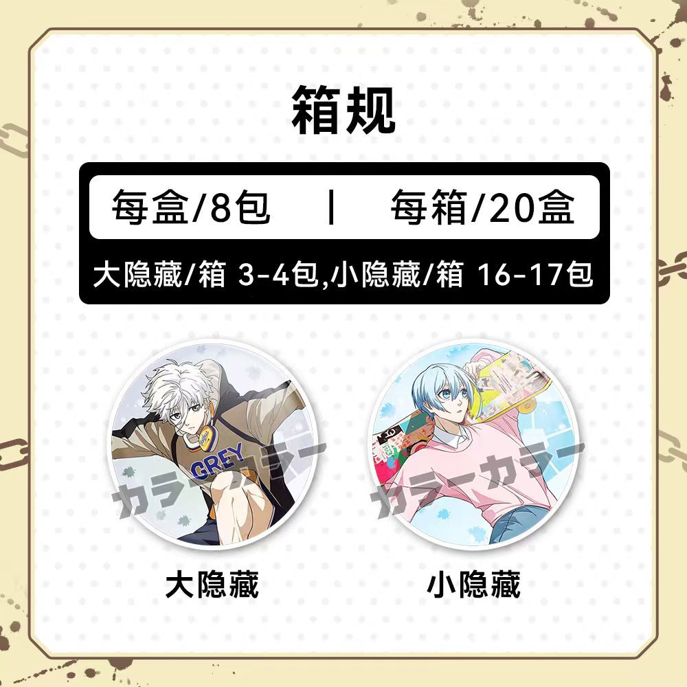 ![]() | (japanese fan ii chuangjin) blue prison badge (8 packs/box) | One unit contains 20 boxes, with each box containing 8 packs. there's a chance of pulling a rare, oversized secret chase figure (58mm) | 8шт: ¥8.00, 16шт: ¥7.50, 160шт: ¥7.30 | 3952 | 5960600988410 | |