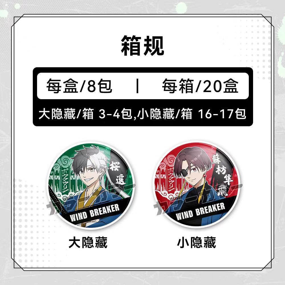 ![]() | (japanese fan ii chuangjin) windproof youth badge no. 1 (8 packs/box) | One unit contains 20 boxes, with each box containing 8 packs. there's a chance of pulling a rare, oversized secret chase figure (58mm) | 8шт: ¥8.00, 16шт: ¥7.50, 160шт: ¥7.30 | 3984 | 5960600988432 | |
