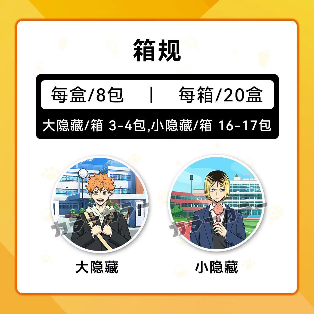 ![]() | (japanese fan iichuang) volleyball junior badge no. 1 (8 packs/box) | One unit contains 20 boxes, with each box containing 8 packs. there's a chance of pulling a rare, oversized secret chase figure (58mm) | 8шт: ¥8.00, 16шт: ¥7.50, 160шт: ¥7.30 | 3984 | 5960600988425 | |