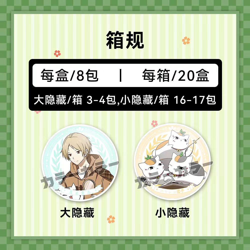 ![]() | (japanese fan erchuang) natsume's pocket badge (8 packs/box) | One unit contains 20 boxes, with each box containing 8 packs. there's a chance of pulling a rare, oversized secret chase figure (58mm) | 8шт: ¥8.00, 16шт: ¥7.50, 160шт: ¥7.30 | 3872 | 5960600988408 | |