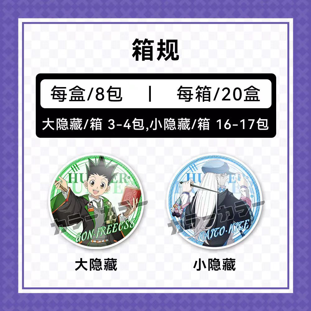 ![]() | (japanese fan iichuang) full-time hunter badge (8 packs/box) | One unit contains 20 boxes, with each box containing 8 packs. there's a chance of pulling a rare, oversized secret chase figure (58mm) | 8шт: ¥8.00, 16шт: ¥7.50, 160шт: ¥7.30 | 3696 | 5960600988434 | |