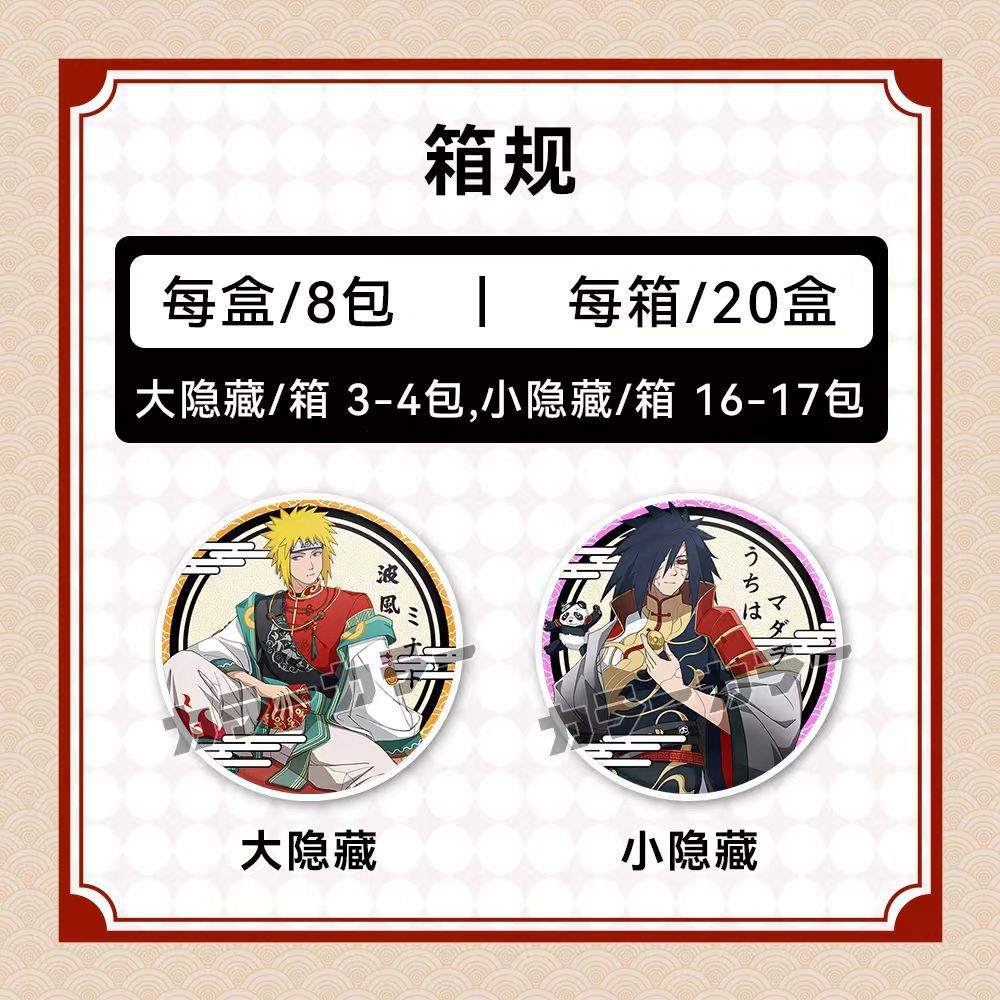 ![]() | (japanese fan 2chuang) naruto badge third edition (8 packs/box) | One unit contains 20 boxes, with each box containing 8 packs. there's a chance of pulling a rare, oversized secret chase figure (58mm) | 8шт: ¥8.00, 16шт: ¥7.50, 160шт: ¥7.30 | 3864 | 5960600988427 | |