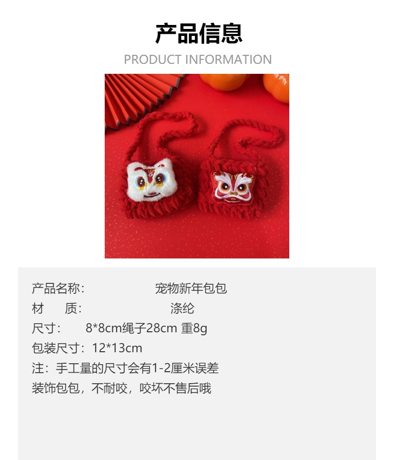 Праздничная шершавая сумка для домашних животных с львом, богатый новогодний подарок для котов и собак, красный конверт, оптовая продажа