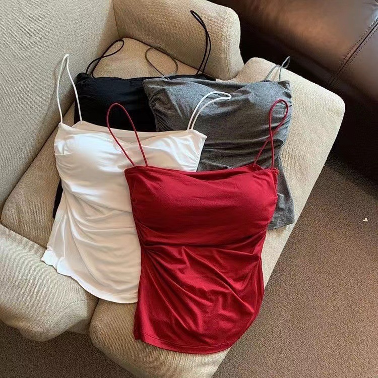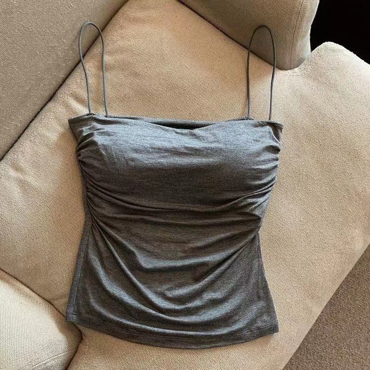 Плиссированный топ для женщин с подкладками для груди, красивый спина, летний облегающий топ