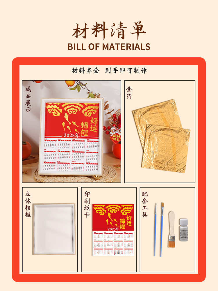 Календарь с золотой фольгой 2026 года, набор материалов для DIY, фоторамка, живопись, детское творчество, ручная работа, декоративное украшение