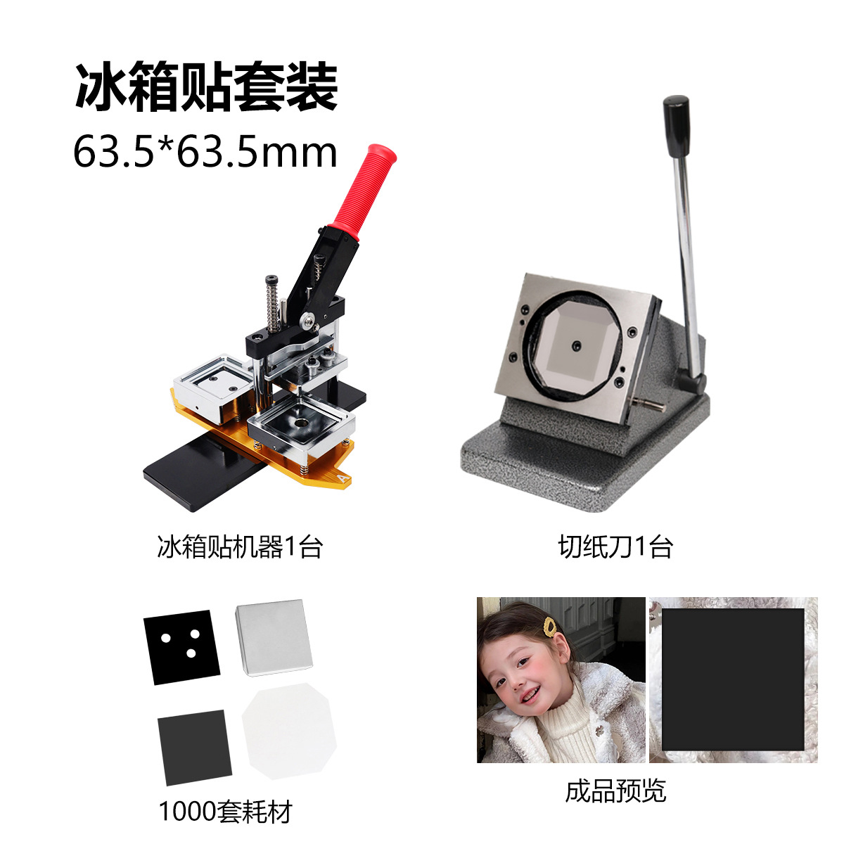 ![]() | 63.5*63.5 set: machine + flat cutter + 1000 sets of cardboard + magnetic adhesive consumables | ¥4200.0 / ≈ 50 591 ₽ | 9999 | 5852264065877 | |