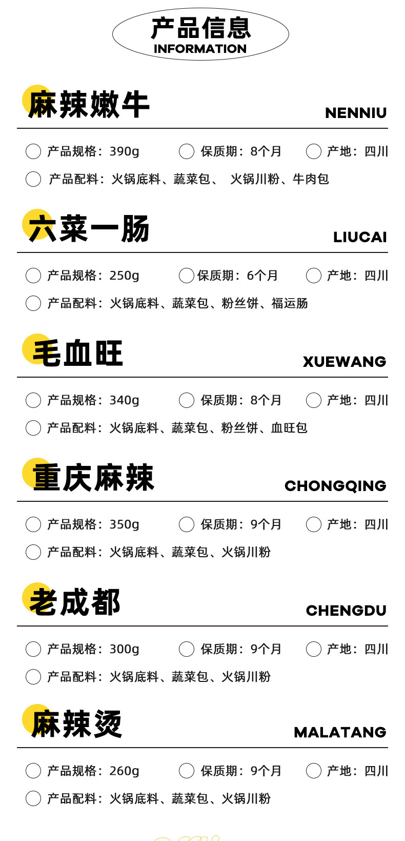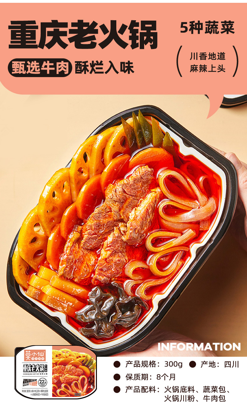 ![]() | [laochengdu hot pot] self-heating hot pot 300g (single box) | ¥9.2 / ≈ 111 ₽ | 2964 | 5687852025854 | |