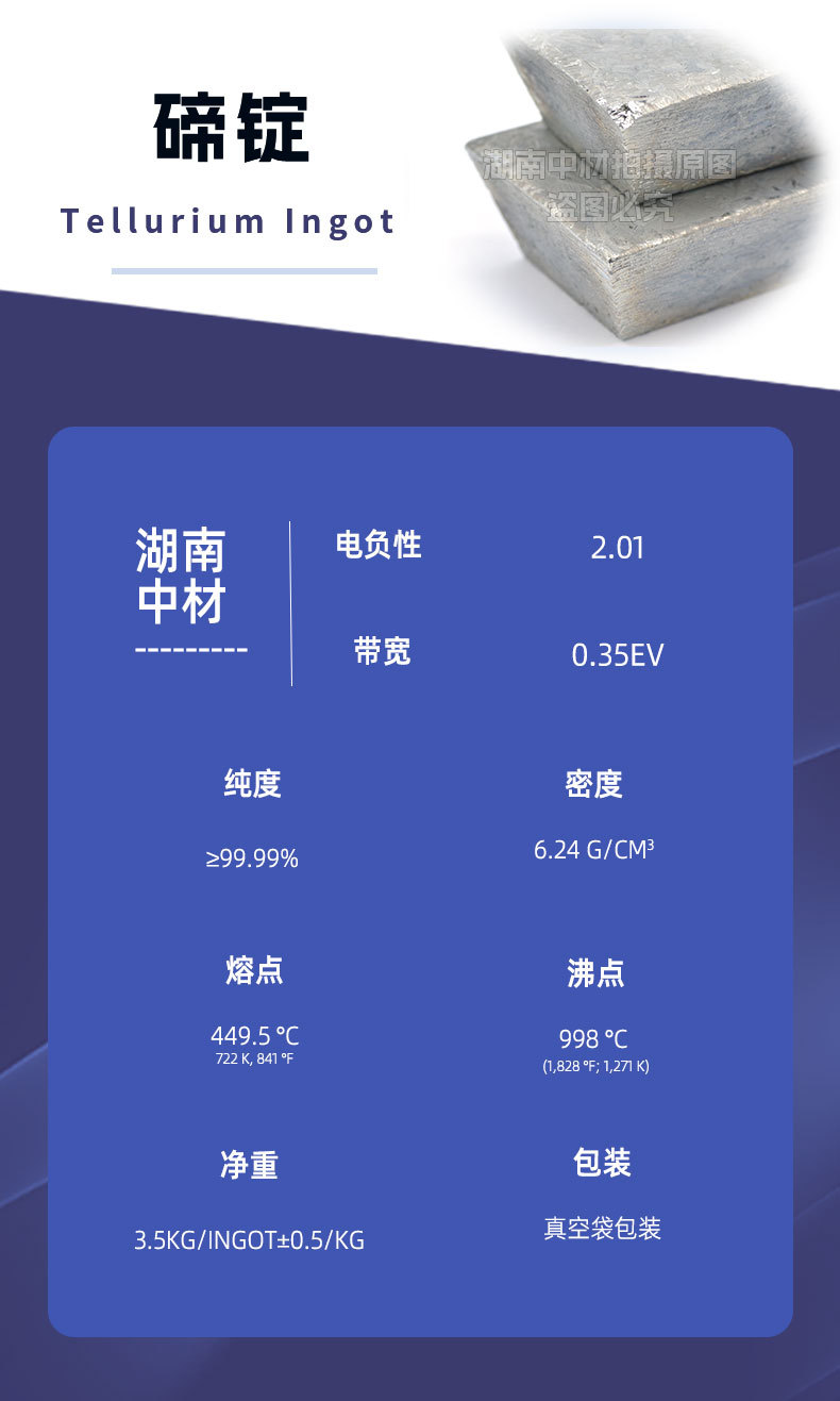 Металлический слиток теллура, высокочистый слиток теллура, блок теллура, прямые продажи завода, добавка сплава, использование в полупроводниках
