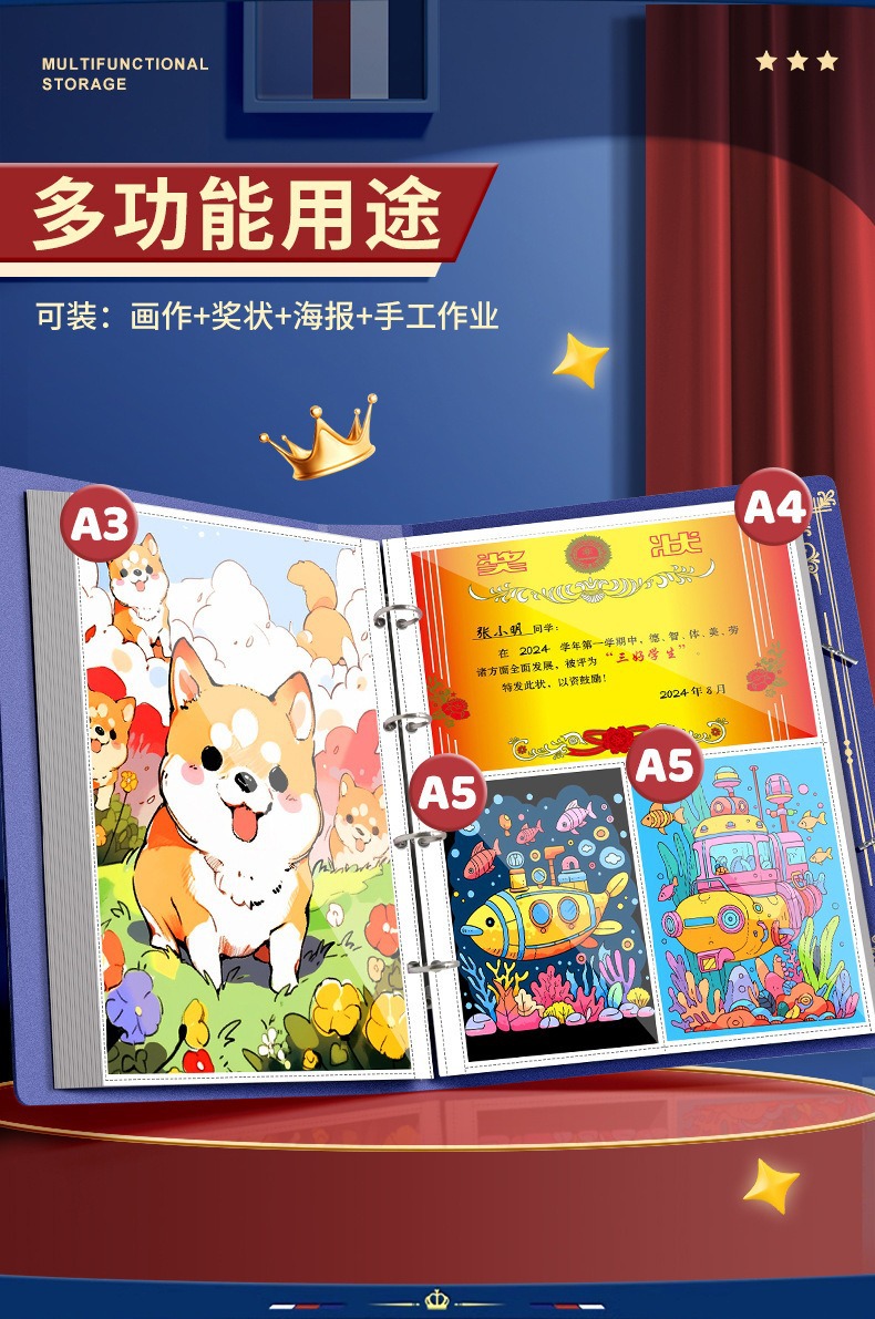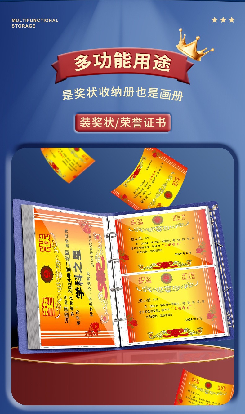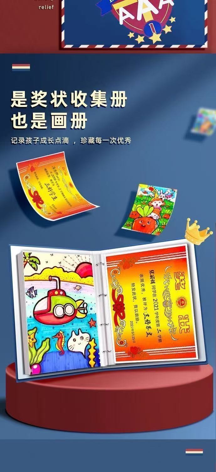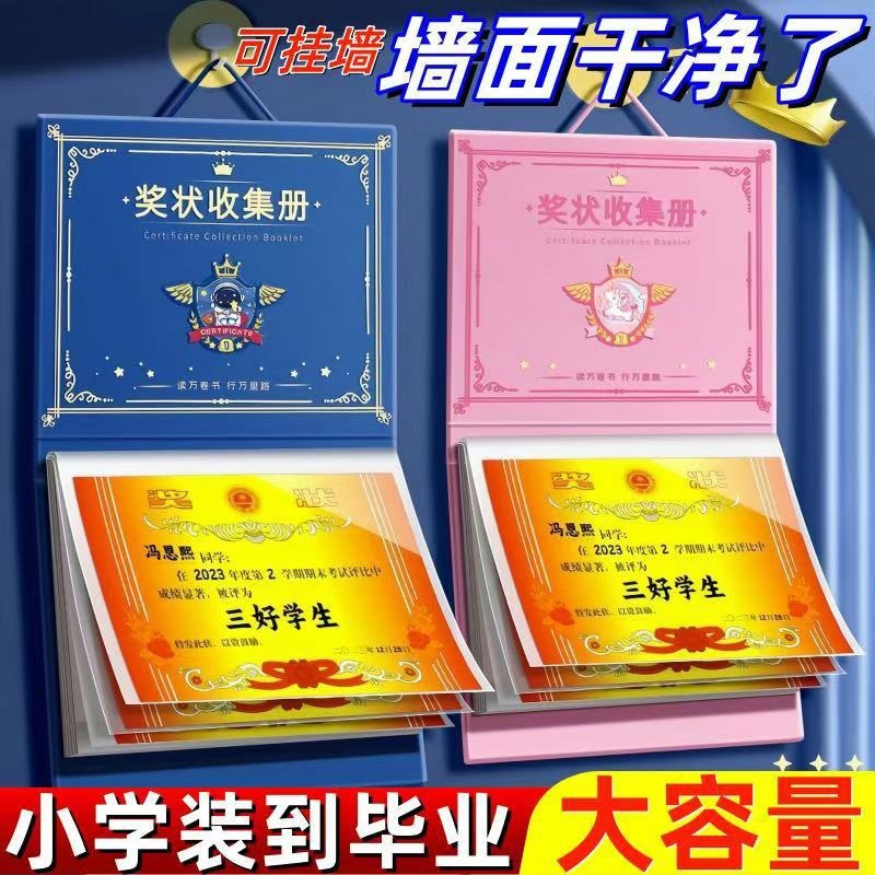1 Certificate collection book can be hung on the wall to display boys and girls honor certificate storage book student collection book storage handy gadget