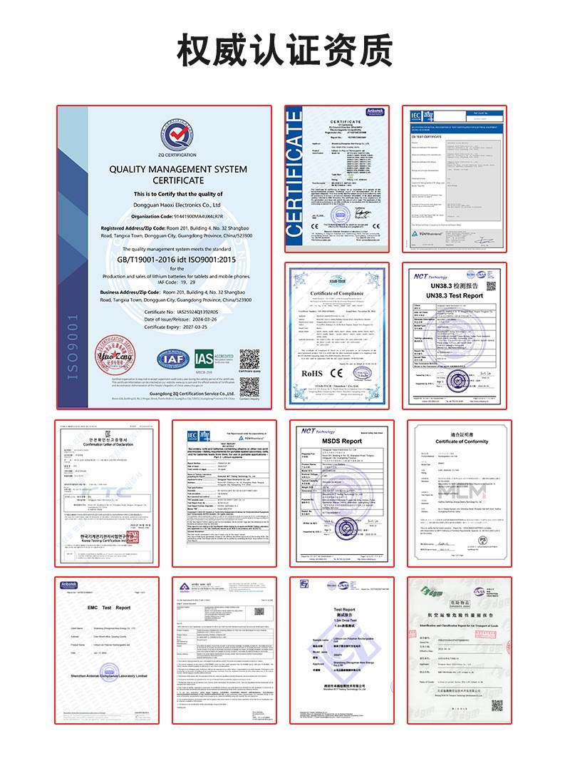 Сертификация продукта ISO9001、UN38.3、MSDS、Rohs、CE PSE