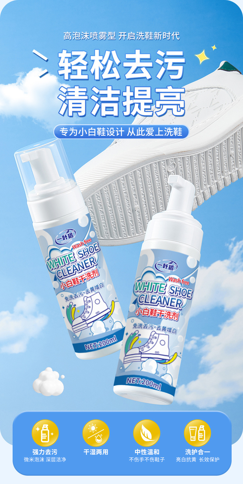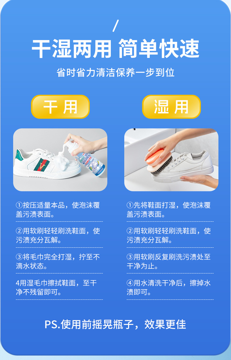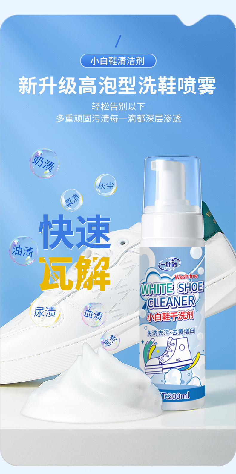 Чистящее средство для белой обуви, пена для сухой чистки, безмытье, артефакт для удаления желтых пятен