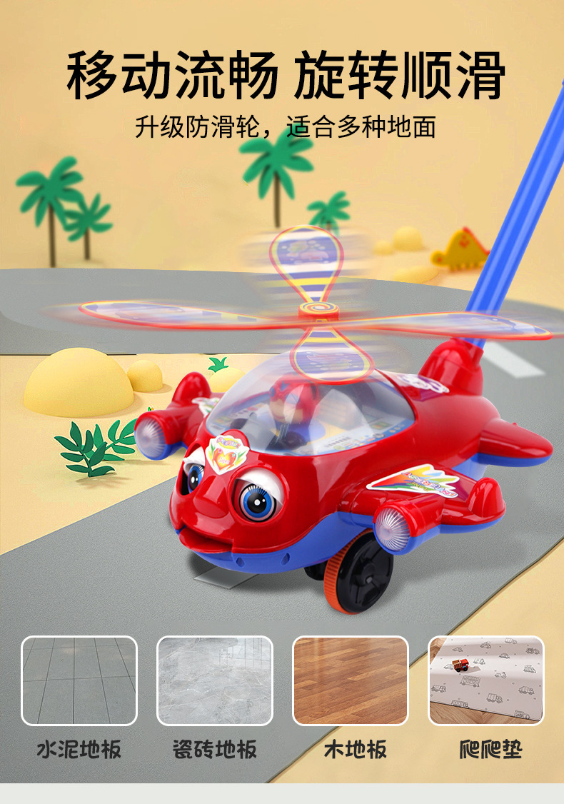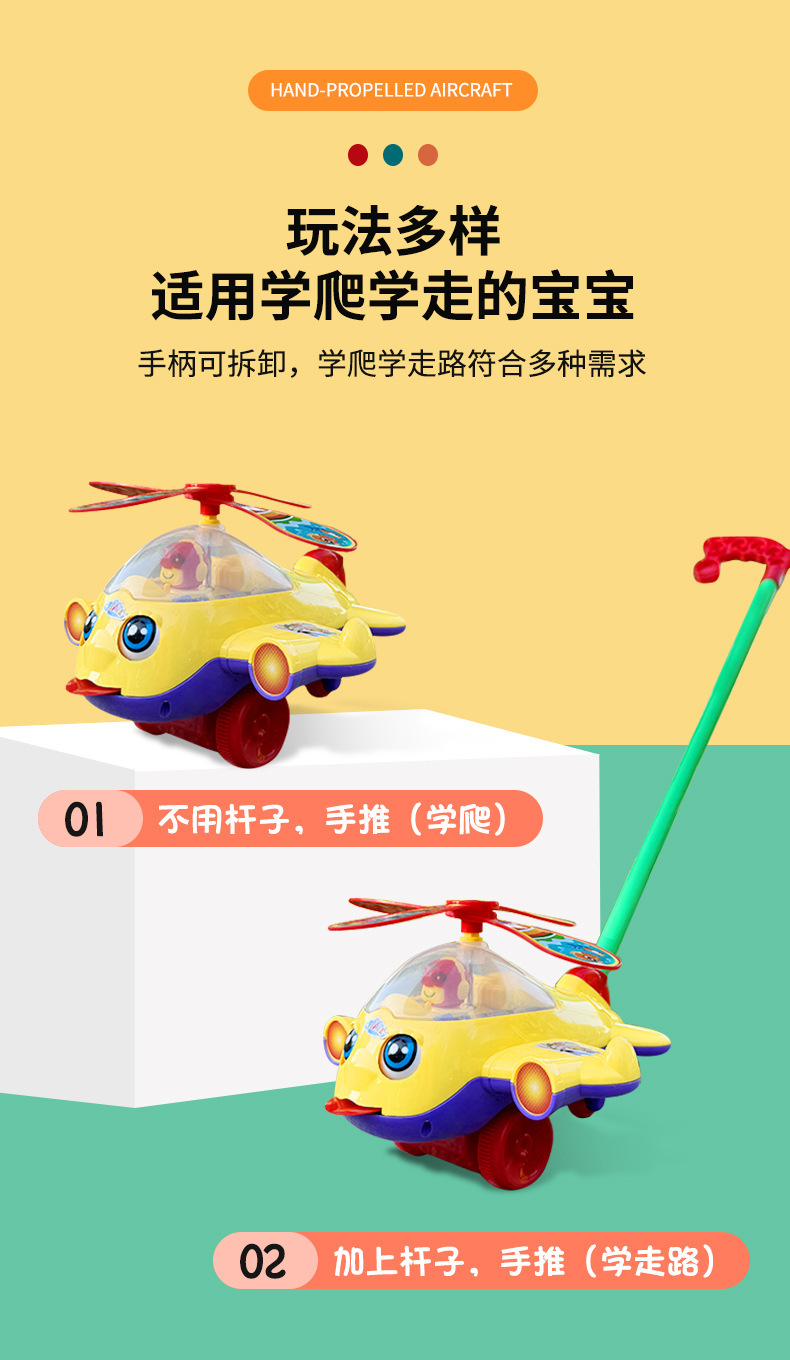 Детская толкаемая игрушка самолет с музыкой для детей 1-3 лет, колокольчик для помощи при ходьбе